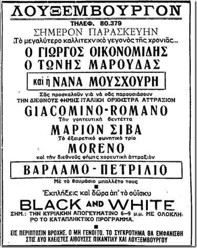Εκεί έπαιζαν οι τοπικές ορχήστρες Πάρµεν, του Μαύρου, του Σπάθη και του Καρανίκα αλλά και ιταλικές ορχήστρες όπως η «Ι Demoni», το 1963, και ο Ιταλός τραγουδιστής Σέρτζιο Ενρίγκο με το δημοφιλές τραγούδι «Io che amo solo te». Εκεί η περίφηµη Γαλλίδα στριπτιζέζ Ρίτα Κάντιλακ, παρουσίασε ένα πρωτόγνωρο για τους Θεσσαλονικείς πρόγραµµα. Εκεί πρωτοτραγούδησε η Νάνα Μούσχουρη με τον Μάνο Χατζιδάκι να την συνοδεύει στο πιάνο, εκεί έκανε τα πρώτα του σκετσάκια ο Χάρι Κλυν, εκεί τραγούδησε ο Στέλιος Καζαντζίδης και συχνά εµφανιζόταν ο κοµφερασιέ Γιώργος Οικονοµίδης επικεφαλής µουσικών συγκροτηµάτων.