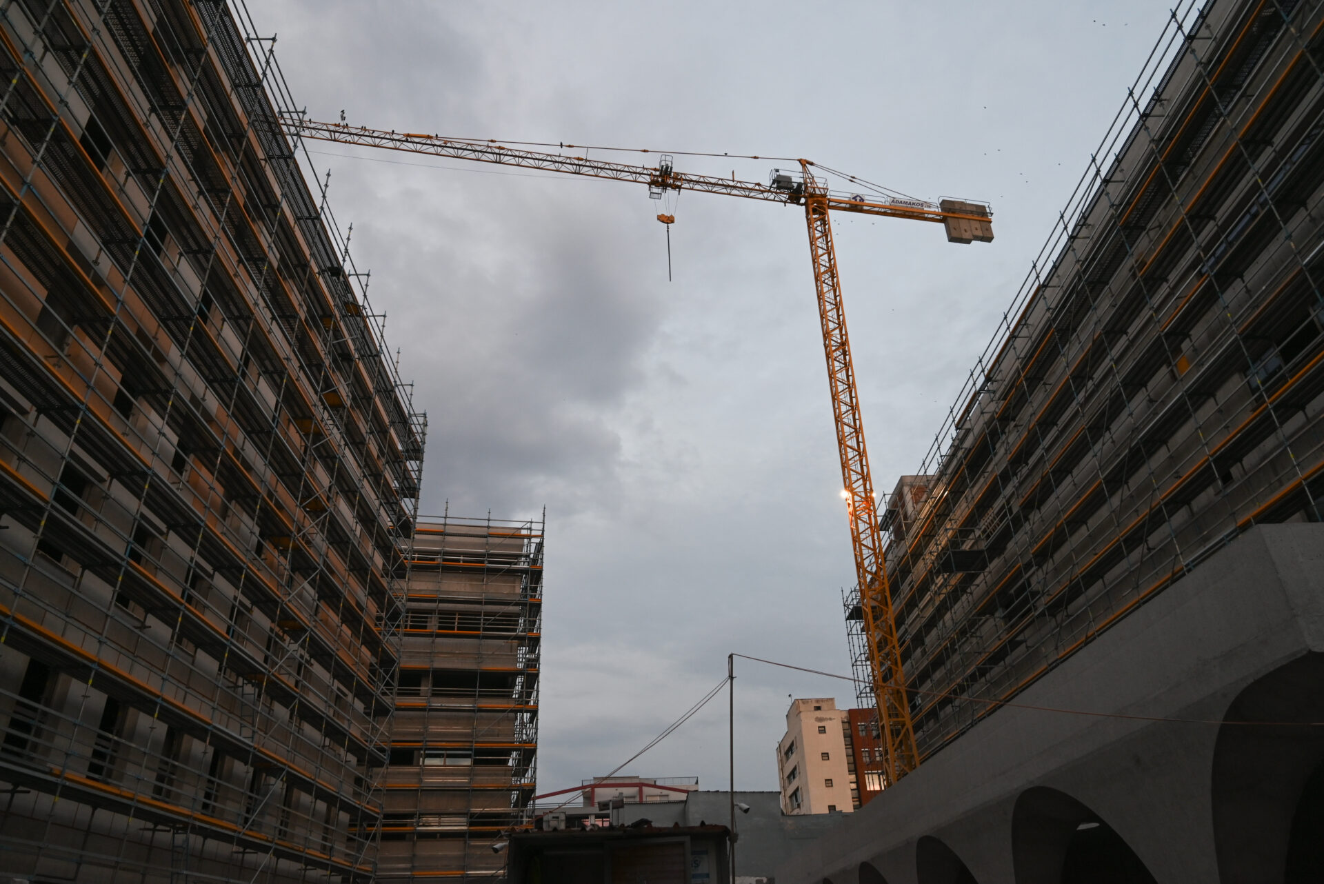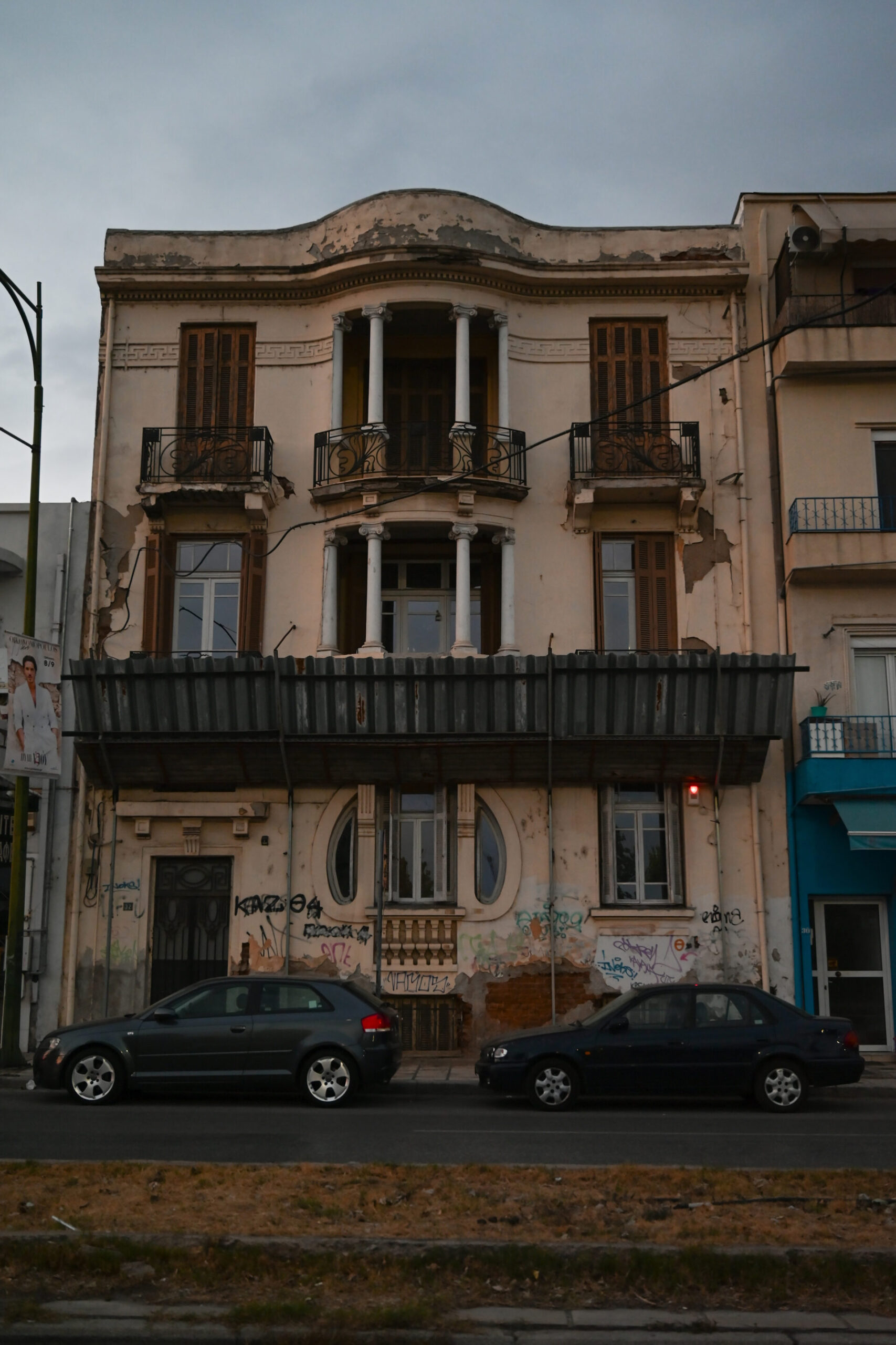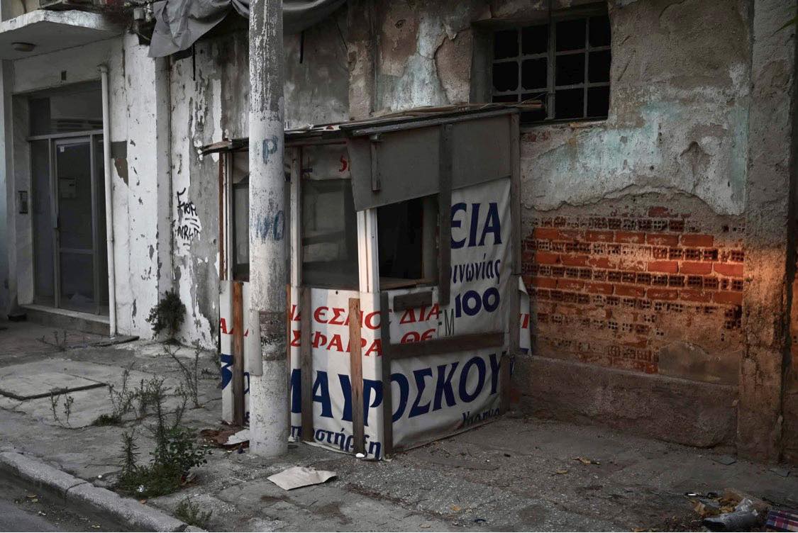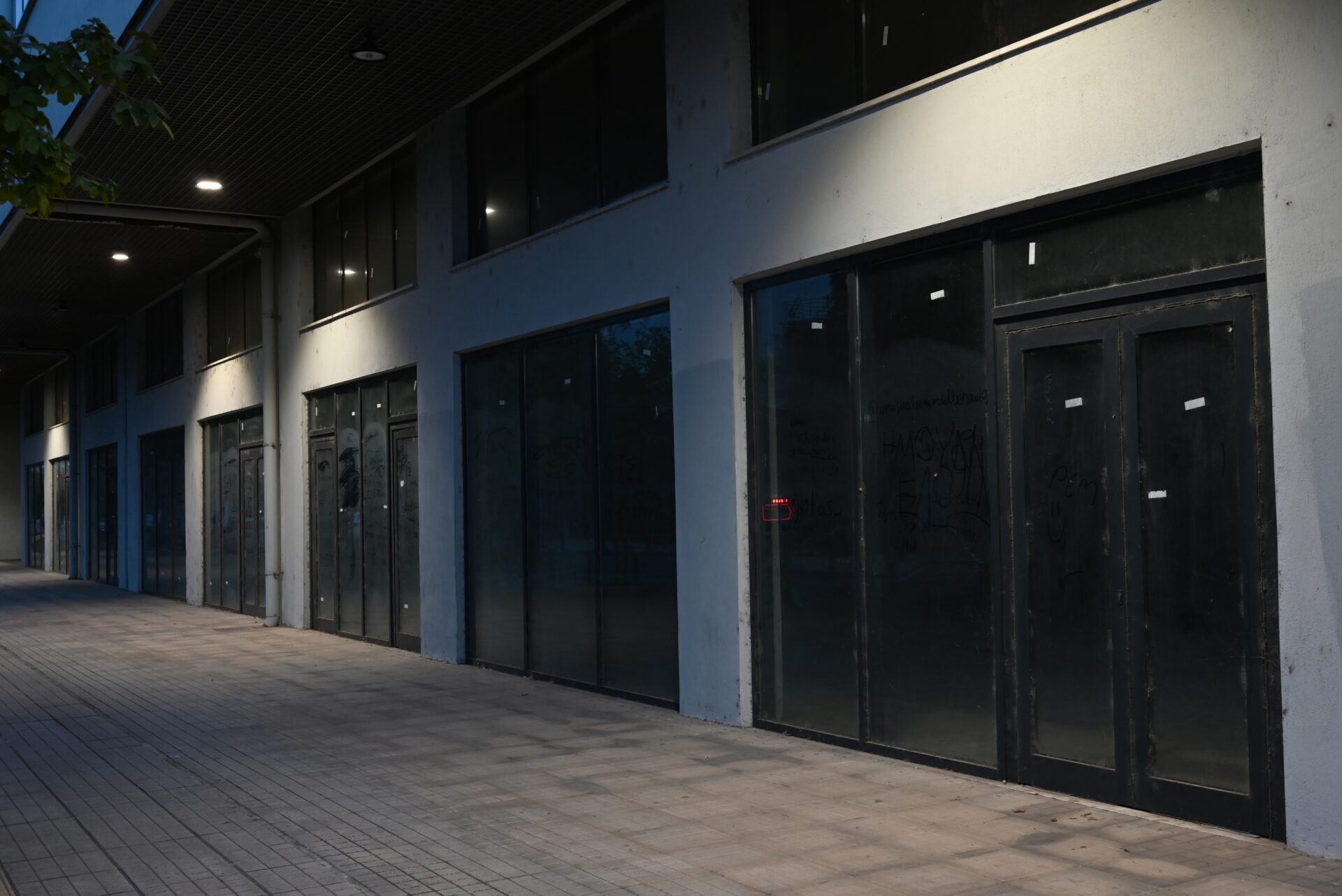 Ανοίκιαστα και σκονισμένα όλα τα καταστήματα στο ισόγειο του, με ταμπέλες μεσιτών να βρίσκονται στα τζάμια τους, ερημιά και στο τούνελ που οδηγεί στο μπροστινό του μέρος.