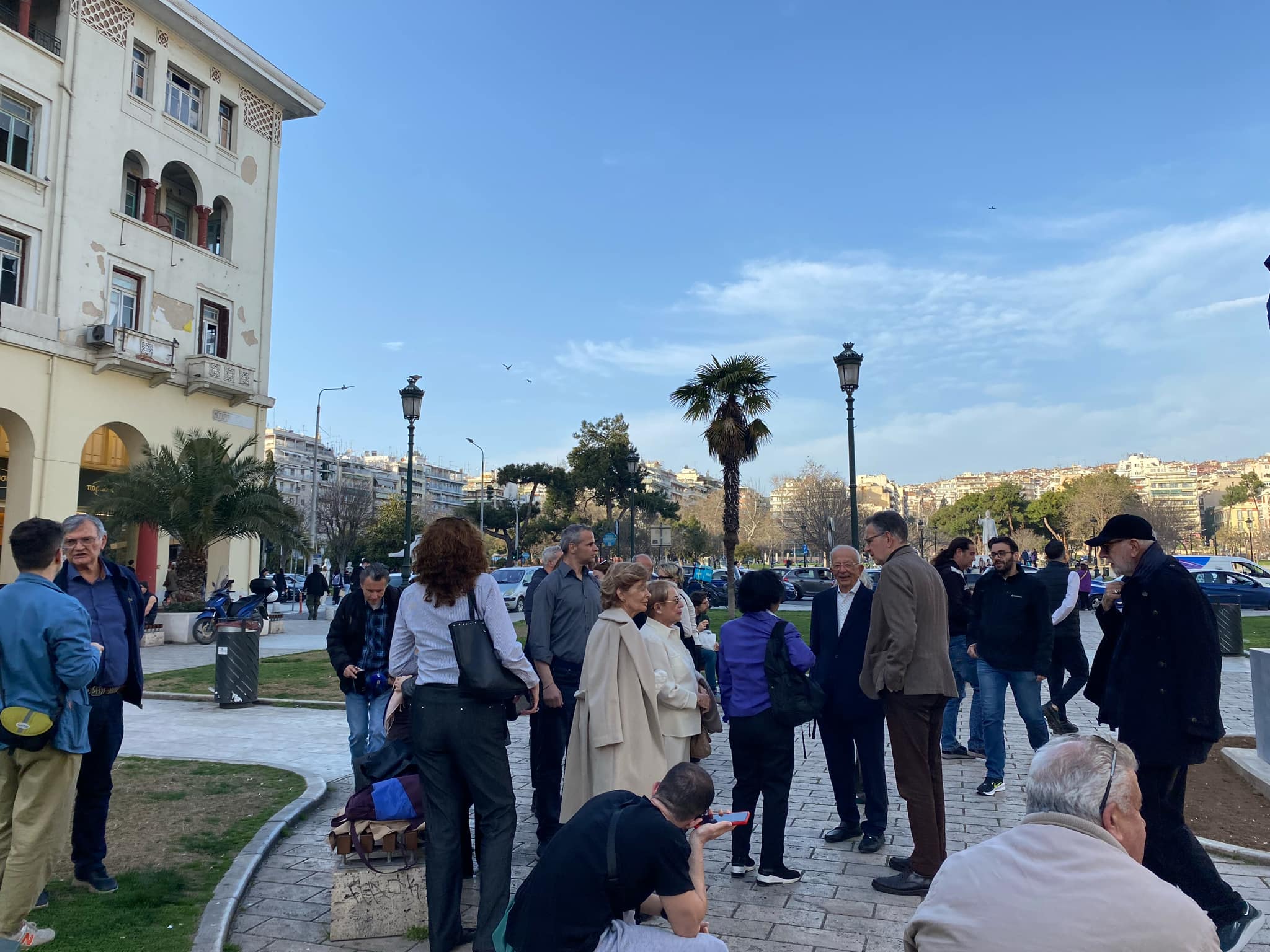 Πραγματοποιούνται αυτήν τη στιγμή στην οδό Αριστοτέλους τα αποκαλυπτήρια του γλυπτού «Γυναίκα σε λεωφορείο», παρουσία του γλύπτη Μανόλη Τζομπανάκη και ιθυνόντων της πόλης.