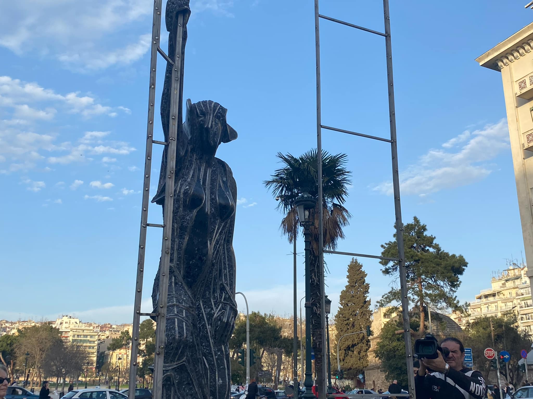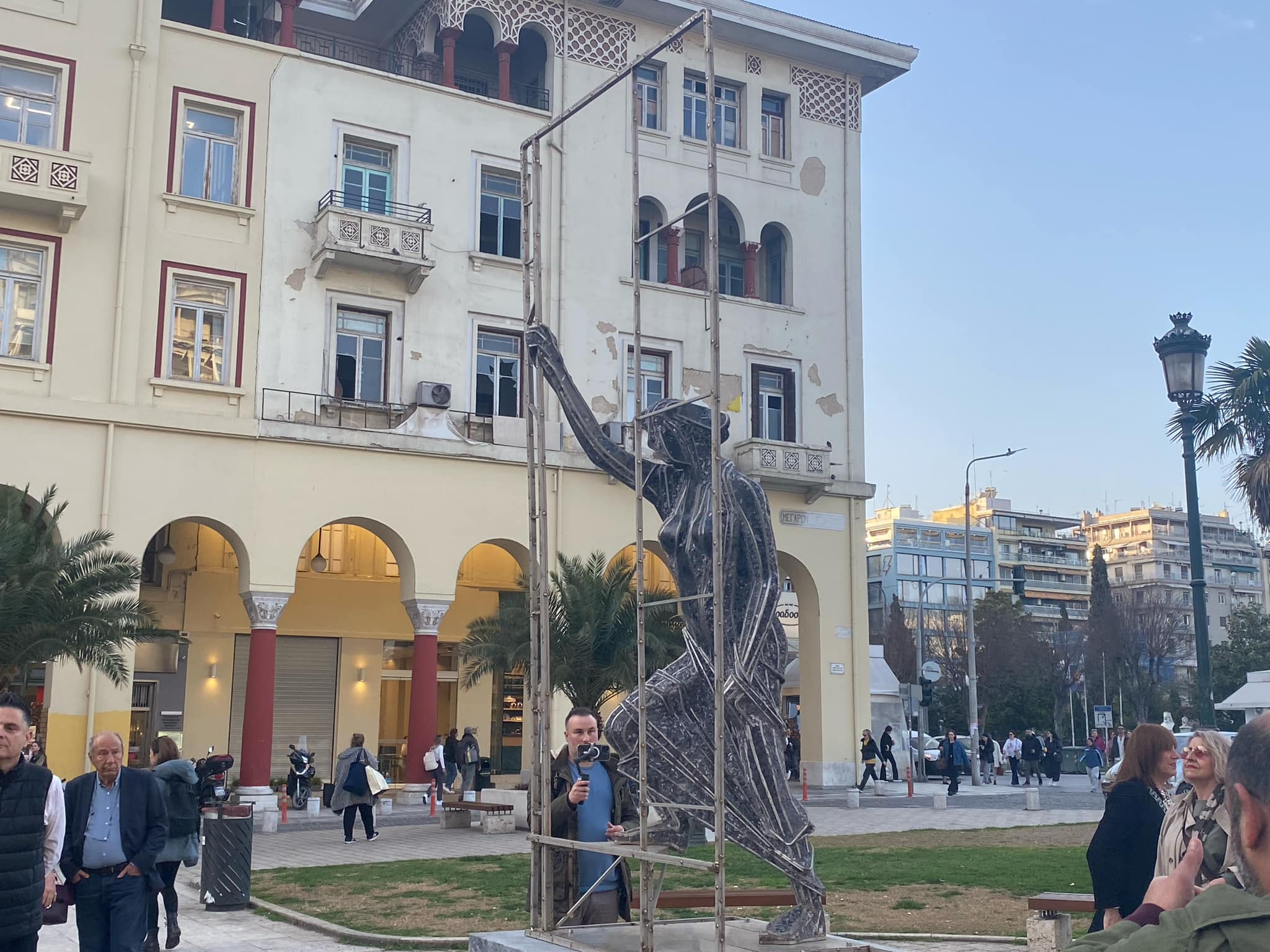 Αριστοτέλους: Έγιναν τα αποκαλυπτήρια του γλυπτού «Γυναίκα σε λεωφορείο» (ΕΙΚΟΝΕΣ-ΒΙΝΤΕΟ)