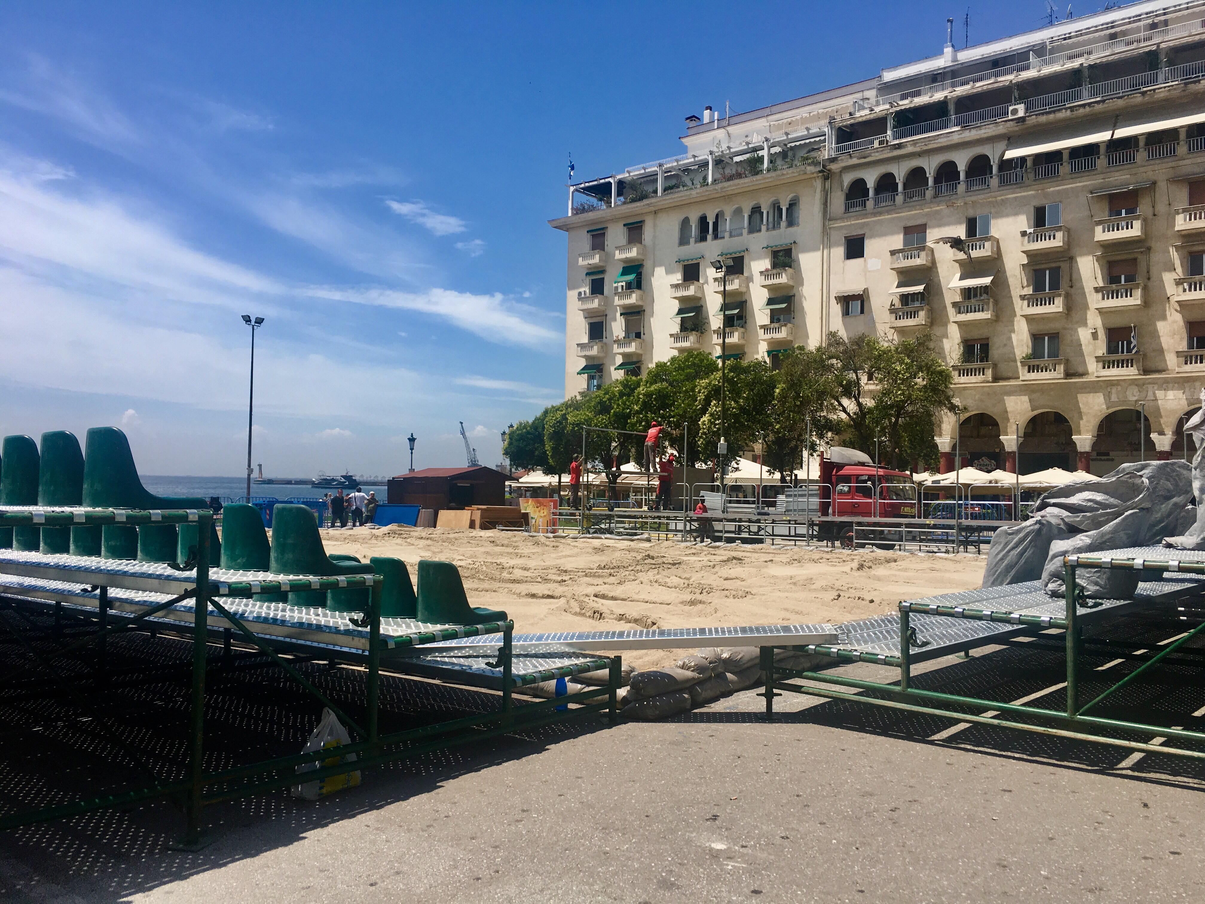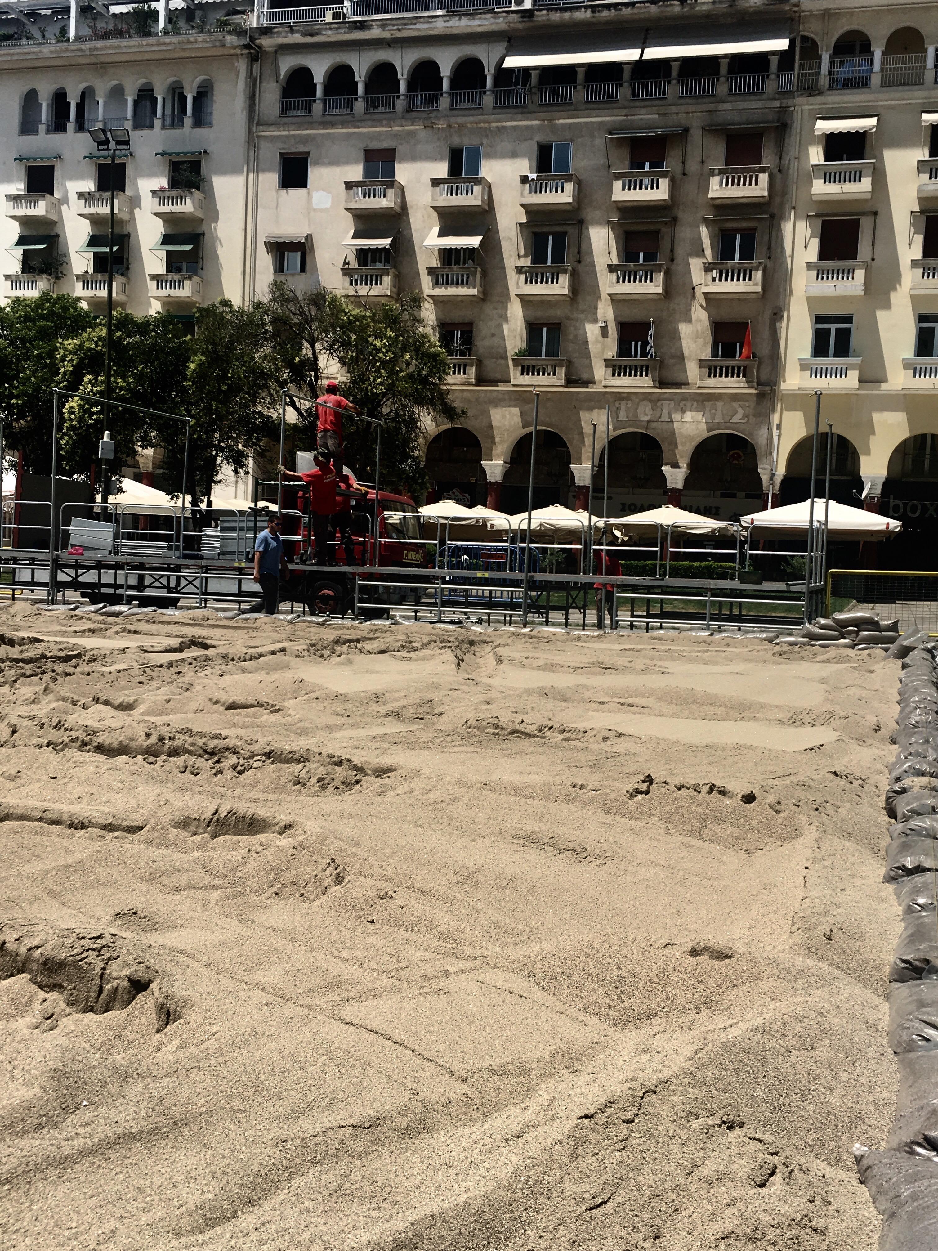 Αν περάσεις από την Αριστοτέλους δεν θα βρεις την πλατεία όπως την ήξερες. Άμμος, εξέδρες, σκηνικό beach voley και τι λείπει; Οι παίκτες, το λάδι καρύδας στα σώματα και η μπάλα. Θα τα δεις και αυτά, από αύριο και μέχρι τις 11 Ιουνίου.