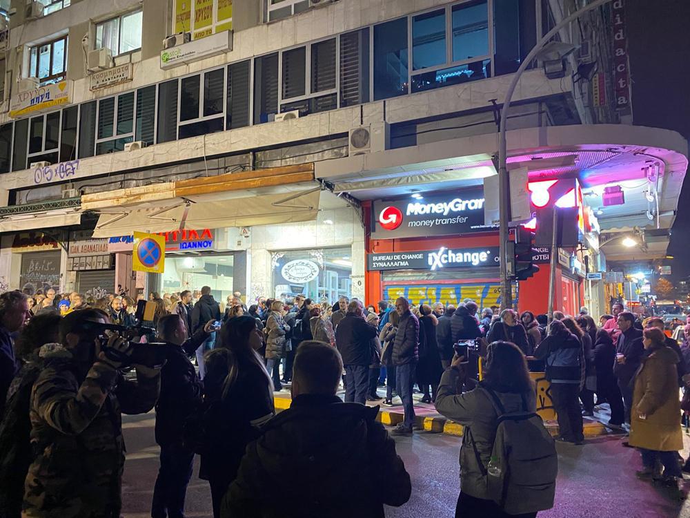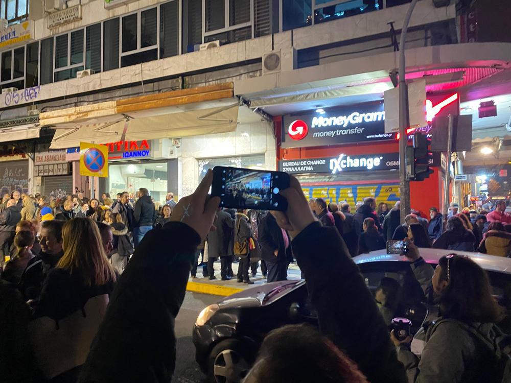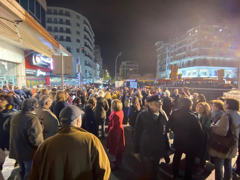 Αυτήν την ώρα έχει κλείσει η οδός Εγνατία με τα μέλη της κίνησης να προσπαθούν να διοχετεύσουν τον κόσμο σε μέρη που δεν θα εμποδίζουν την κίνηση των οχημάτων και των αστικών λεωφορείων: