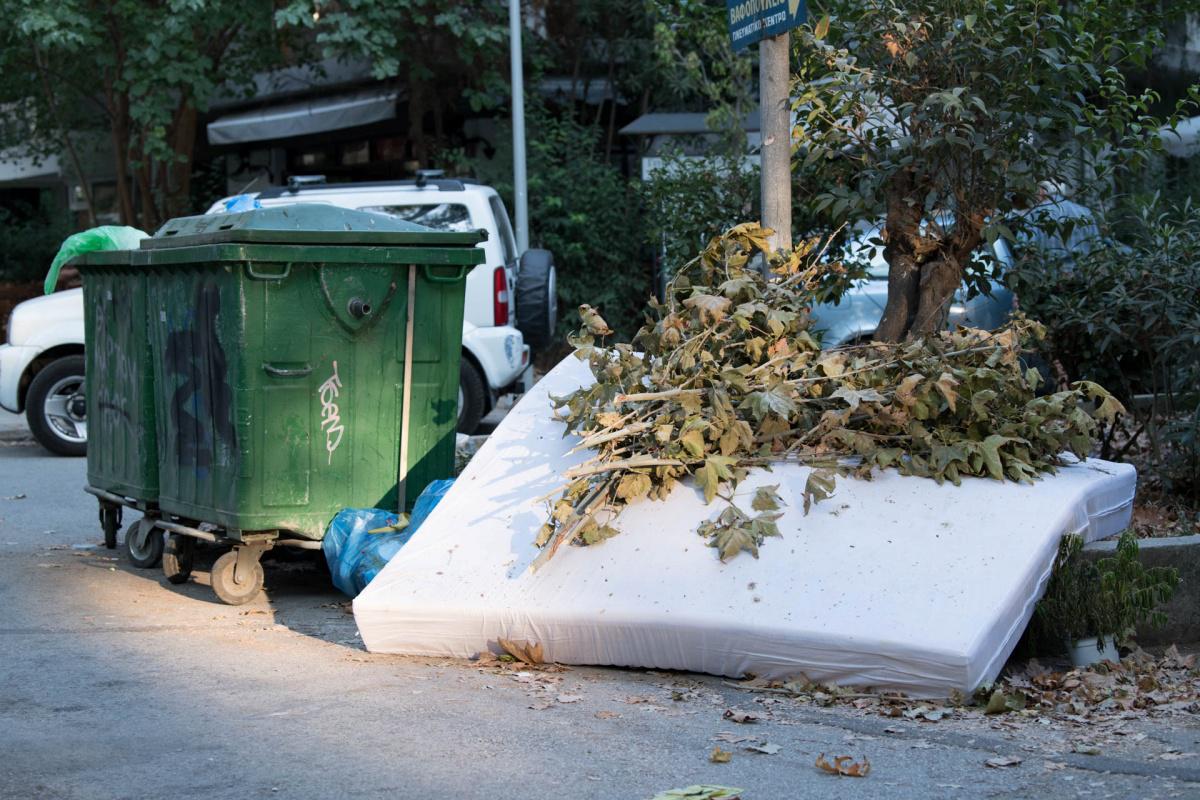 Με τη μποχα των σκουπιδιών αφόρητη. Σκουπίδια κυριολεκτικά παντού πεταμένα. Αυτοκίνητα παρκαρισμένα επάνω στα πεζοδρόμια.