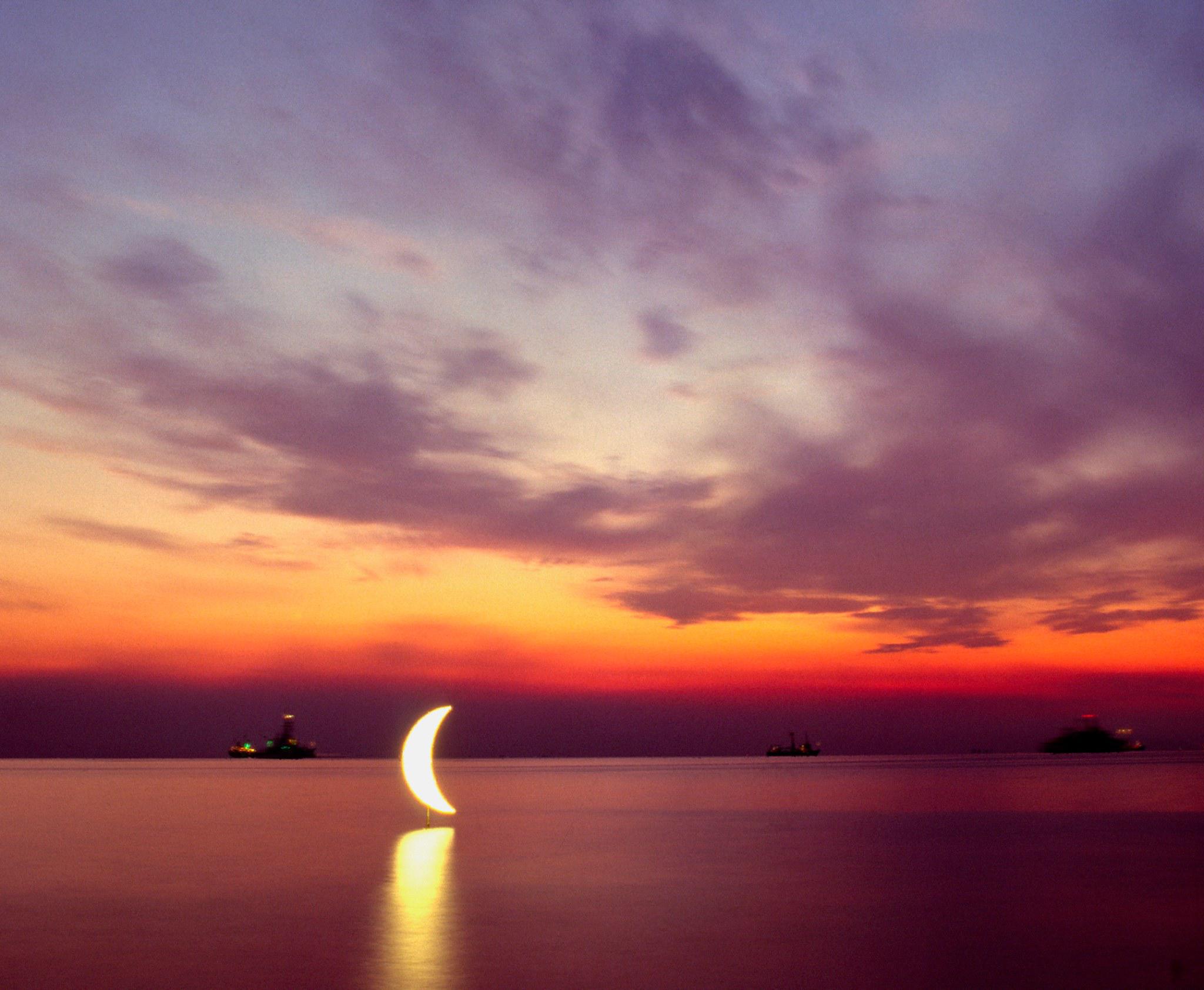 Το φεγγάρι αυτό ήταν τοποθετημένο μέσα στη θάλασσα, μετά τοποθετήθηκε πάνω στην προκυμαία της νέας παραλίας μπροστά στο Macedonia Palace, μετά άγνωστοι το βανδάλισαν μερικές φορές και μία το έριξαν στο βυθό, μετά αποφασίστηκε να ξανατοποθετηθεί μέσα στη θάλασσα. Και κει άρχισαν οι νέες περιπέτειες.