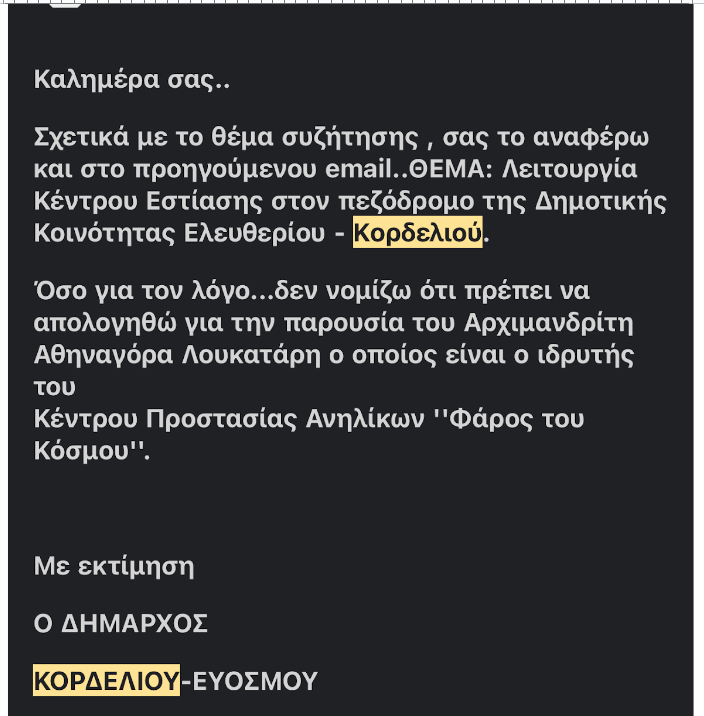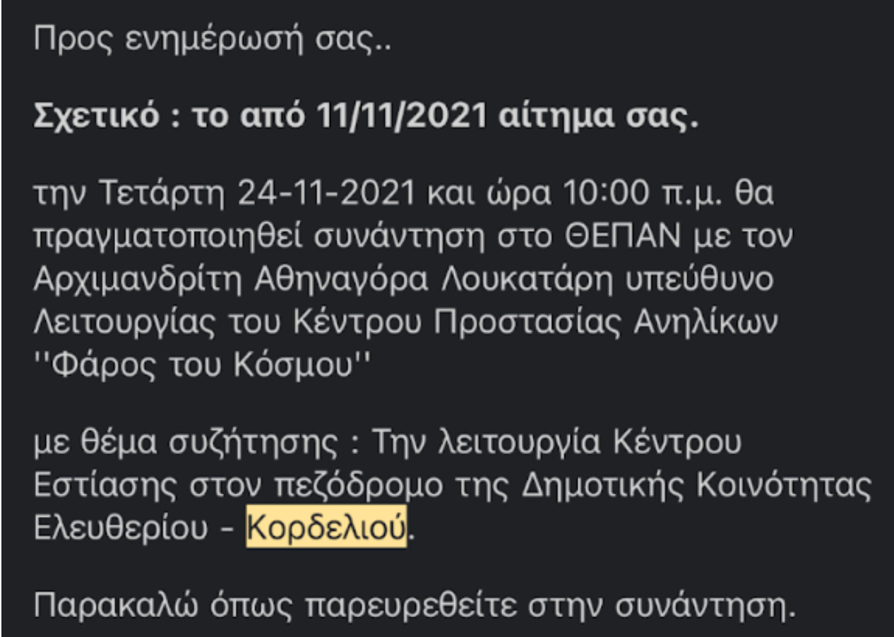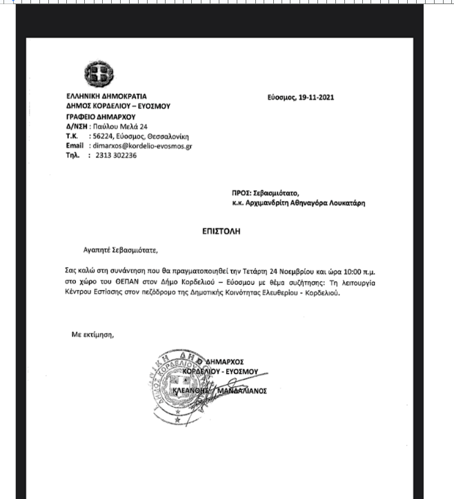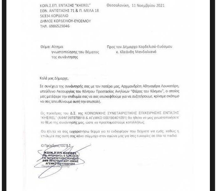 Ενώ ο πρόεδρος της ΚοινΣΕΠ «Kherel» Παρασκευάς Σελίμ απέστειλε e-mail στον Δήμαρχο ζητώντας λεπτομέρειες για την συνάντηση:
