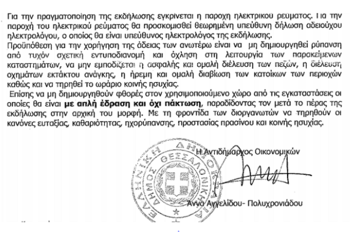 «Ανακοίνωση σχετικά με την αλλοίωση του χώρου και την παραβίαση της απόφασης παραχώρησης