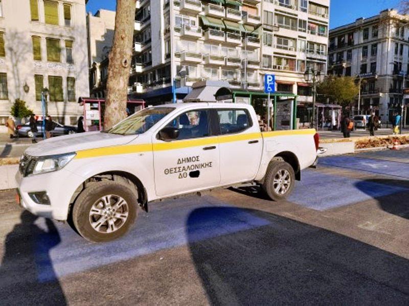 Την επόμενη μέρα στις 3 το μεσημέρι, μέλος του σχήματός μας βρέθηκε στον χώρο και διαπίστωσε ότι το συνεργείο του Δήμου, σε μια σπάνια κρίση ταχύτητας και αποτελεσματικότητας, είχε ήδη μουτζουρώσει το αστέρι και τα συνθήματα με μαύρη μπογιά –το αγαπημένο χρώμα του Δημάρχου. Το αυτοκίνητο του συνεργείου που ανέλαβε να απαλλάξει την πόλη από το «ενοχλητικό» εβραϊκό αστέρι, ήταν παρκαρισμένο κάθετα στις ευδιάκριτα σχεδιασμένες θέσεις ΑμεΑ, καταλαμβάνοντας τουλάχιστον δύο από αυτές. Το μέλος μας φωτογράφισε τα σβησμένα συνθήματα και το αυτοκίνητο.