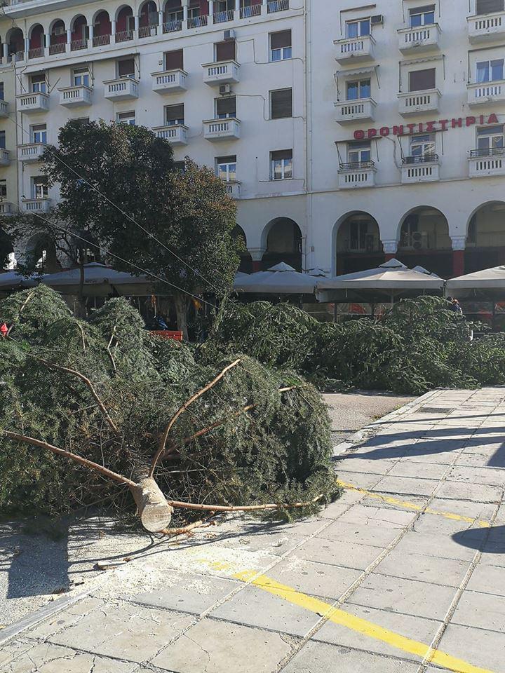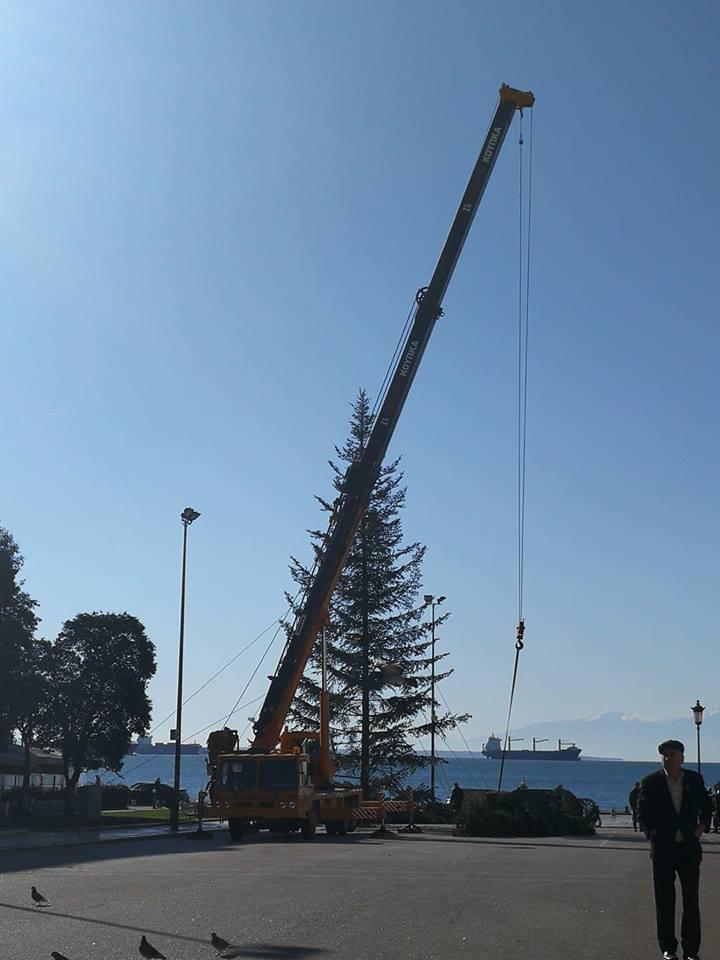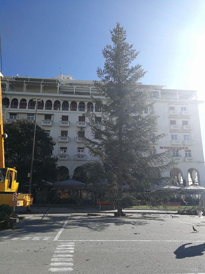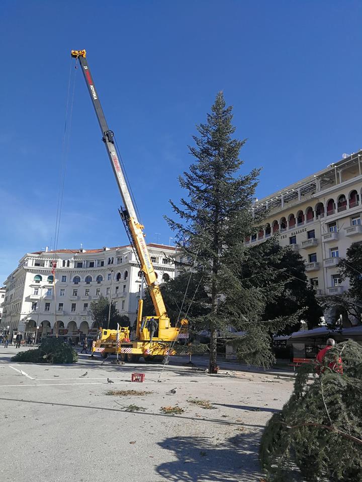 Στην τελική ευθεία για τα Χριστούγεννα μπαίνει η Θεσσαλονίκη καθώς αυτή την ώρα συνεργεία τοποθετούν το χριστουγεννιάτικο δέντρο που αναμένεται να φωταγωγηθεί στην Πλατεία Αριστοτέλους.