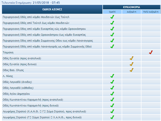 Δείτε αναλυτικά ΕΔΩ τον πίνακα για τη Θεσσαλονίκη και παρακάτω την τελευταία ενημέρωση για την κατάσταση στους δρόμους.