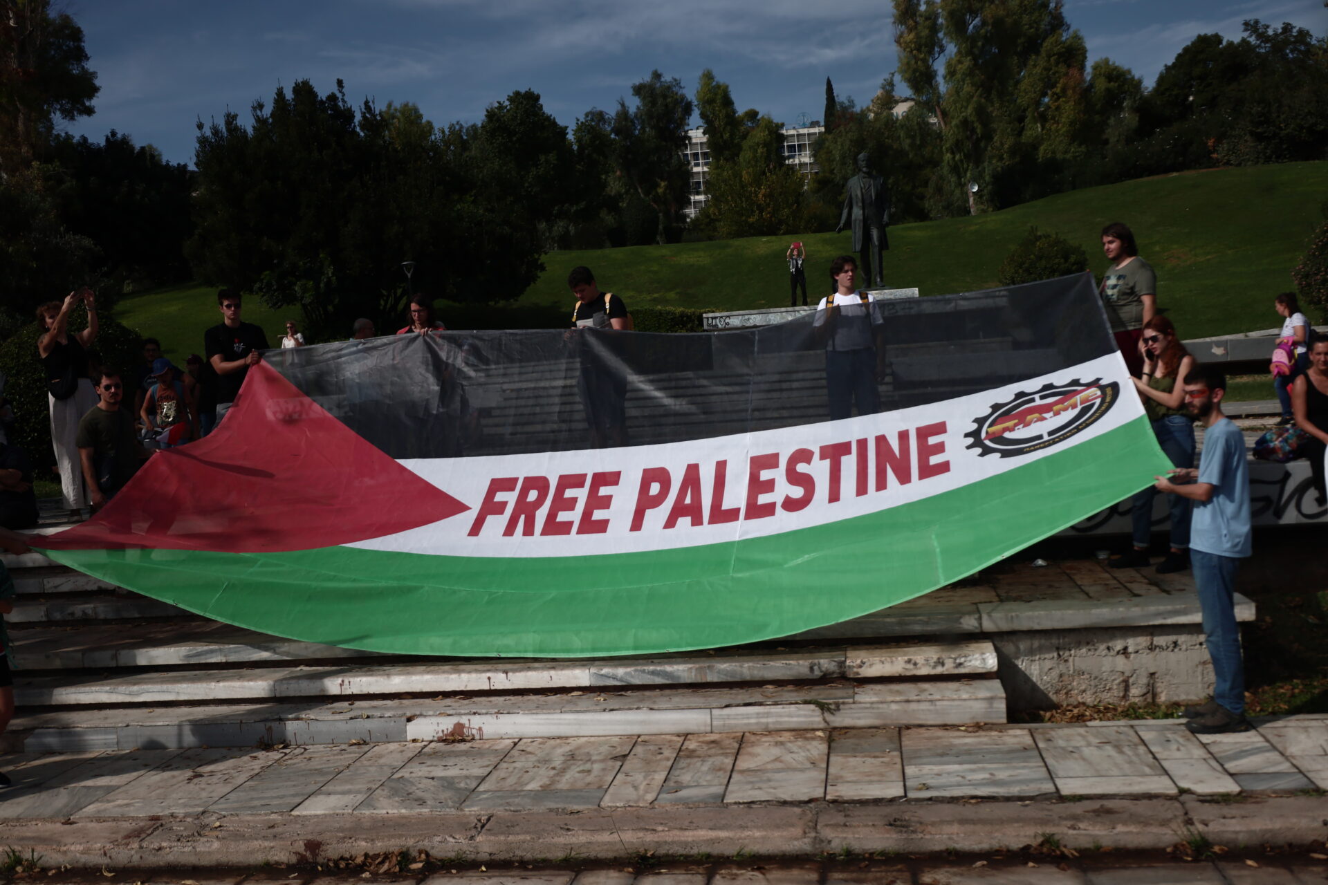 «Να σταματήσει τώρα η σφαγή του παλαιστινιακού λαού στη Λωρίδα της Γάζας από το κράτος – δολοφόνο του Ισραήλ είναι η απαίτηση» τονίζεται στο συλλαλητήριο που πραγματοποιείται στο Πάρκο Ελευθερίας στην Αθήνα.