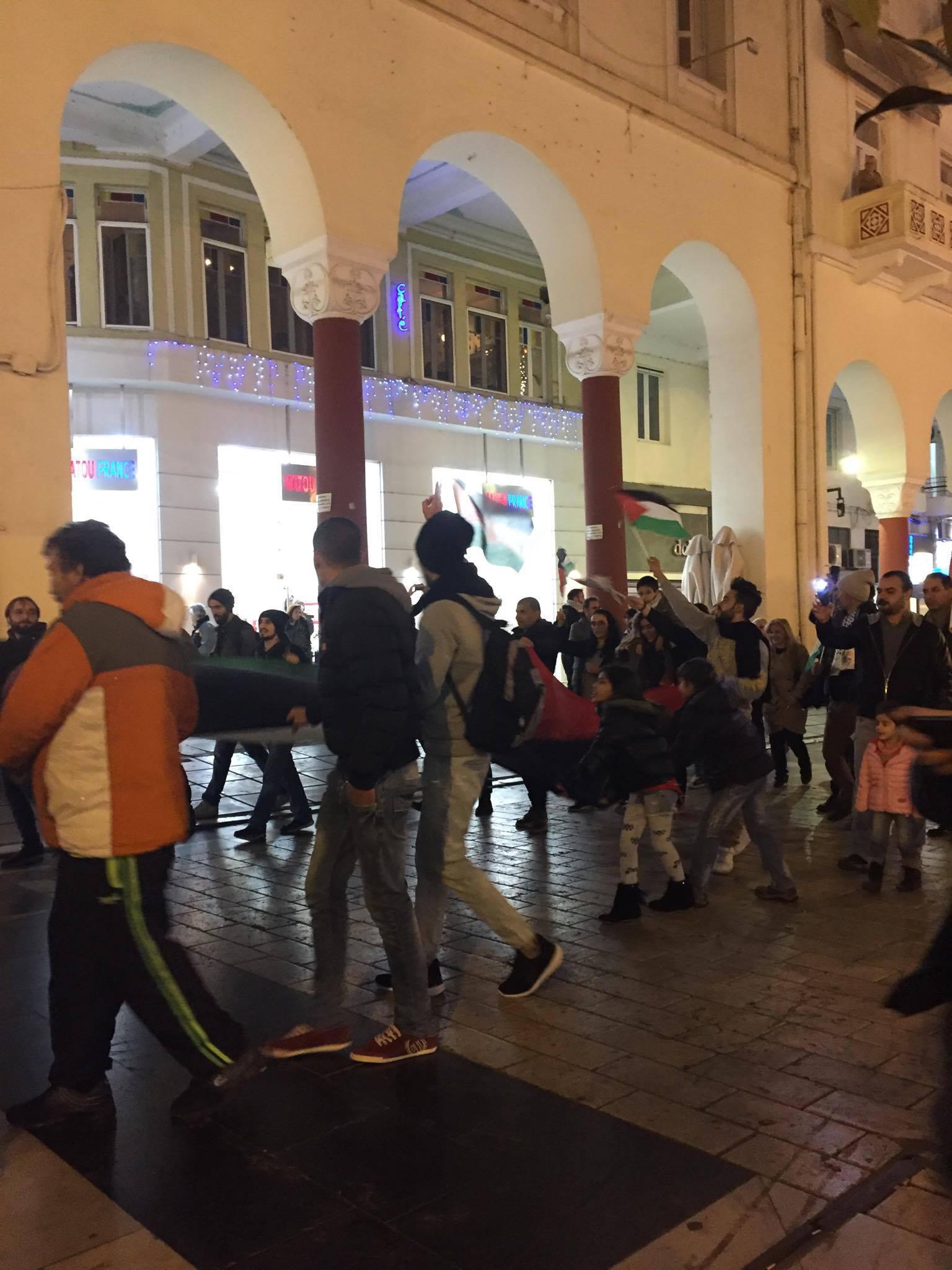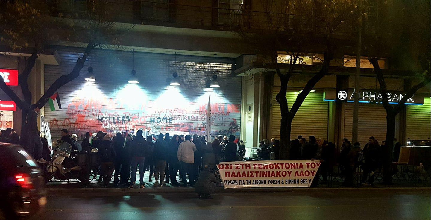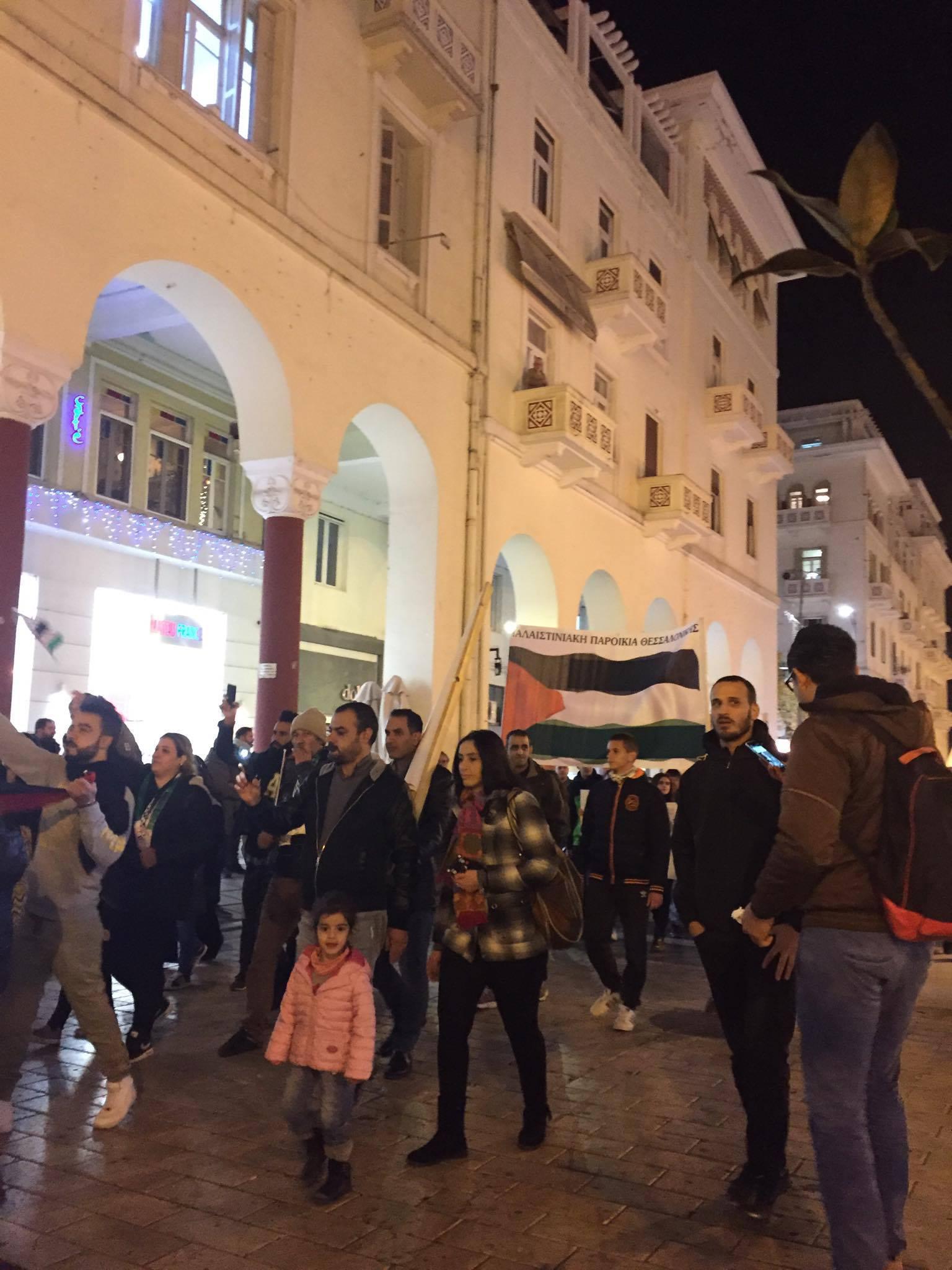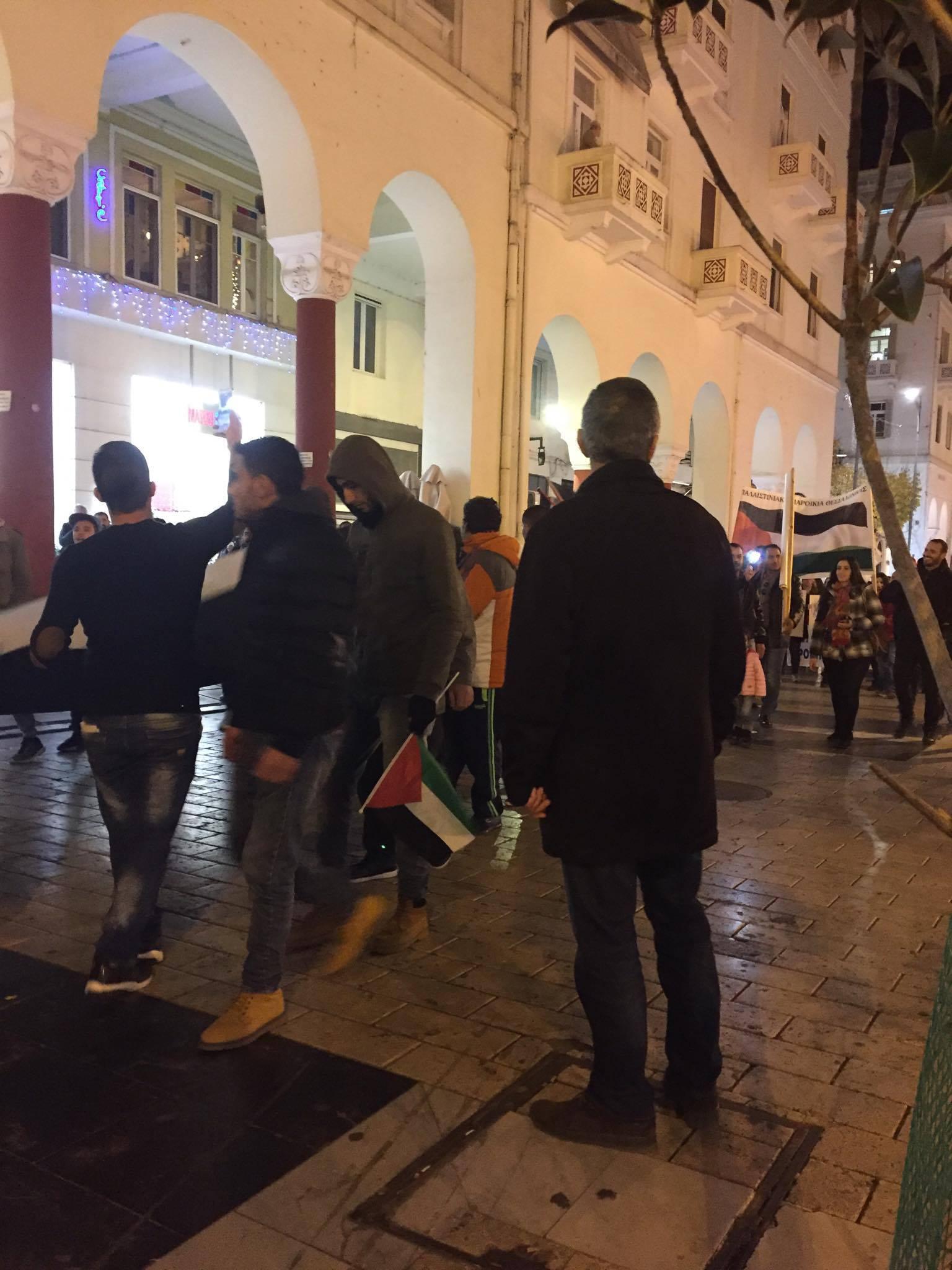 Πορεία βρίσκεται σε εξέλιξη αυτή την ώρα στην πόλη από μέλη της Παλαιστινιακής Παροικίας Θεσσαλονίκης και μέλη της Επιτροπής για την Διεθνή Ύφεση και Ειρήνη Θεσσαλονίκης (ΕΔΥΕΘ).