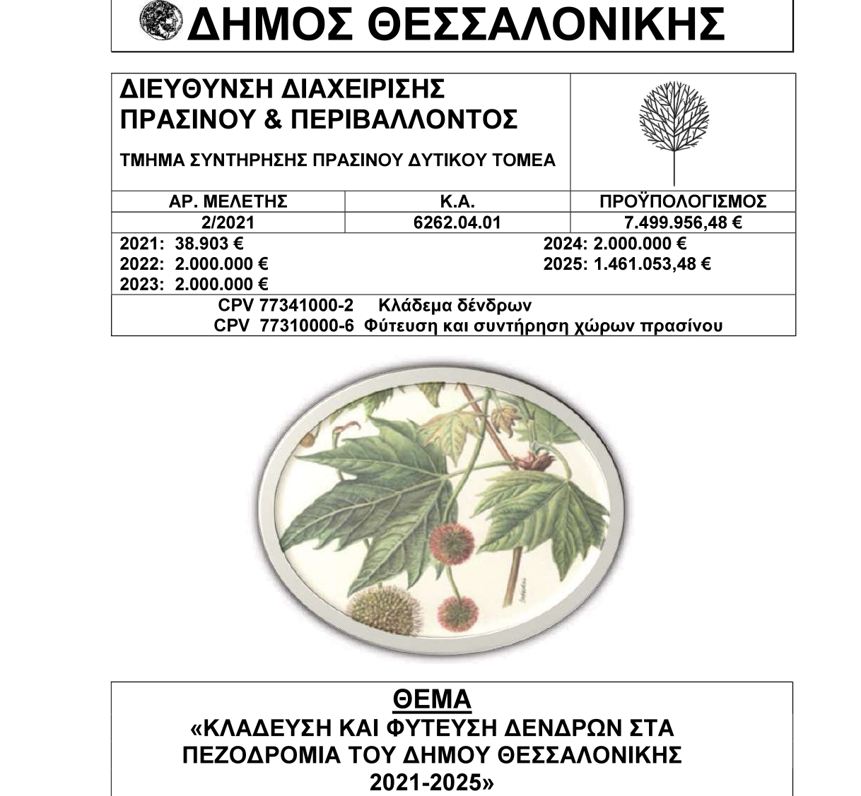 ΔΔΠΠ: Στόχος της υπηρεσίας είναι η σταδιακή αντικατάσταση των αστικών δενδροστοιχιών που έχουν ολοκληρώσει το βιολογικό τους κύκλο με νέα είδη δέντρων που έχουν επιθυμητά χαρακτηριστικά. Η επιλογή των νέων δέντρων που φυτεύονται, γίνεται με βάση τις αρχές του βιοκλιματικού σχεδιασμού και της αρχιτεκτονικής τοπίου, λαμβάνοντας υπόψη τις ιδιαιτερότητες του κάθε δρόμου και της κάθε περιοχής (πλάτος πεζοδρομίου, αποστάσεις από κτίρια και δίκτυα, προσανατολισμό, διαστάσεις δέντρου, σχήμα κόμης, χρώμα, υφή, κ.λπ.). Επιπρόσθετα, επιλέγονται είδη που έχουν επιδείξει μεγάλη προσαρμοστικότητα στο αστικό περιβάλλον καθώς και αντοχή σε μυκητολογικές και φυτοπαθολογικές προσβολές.