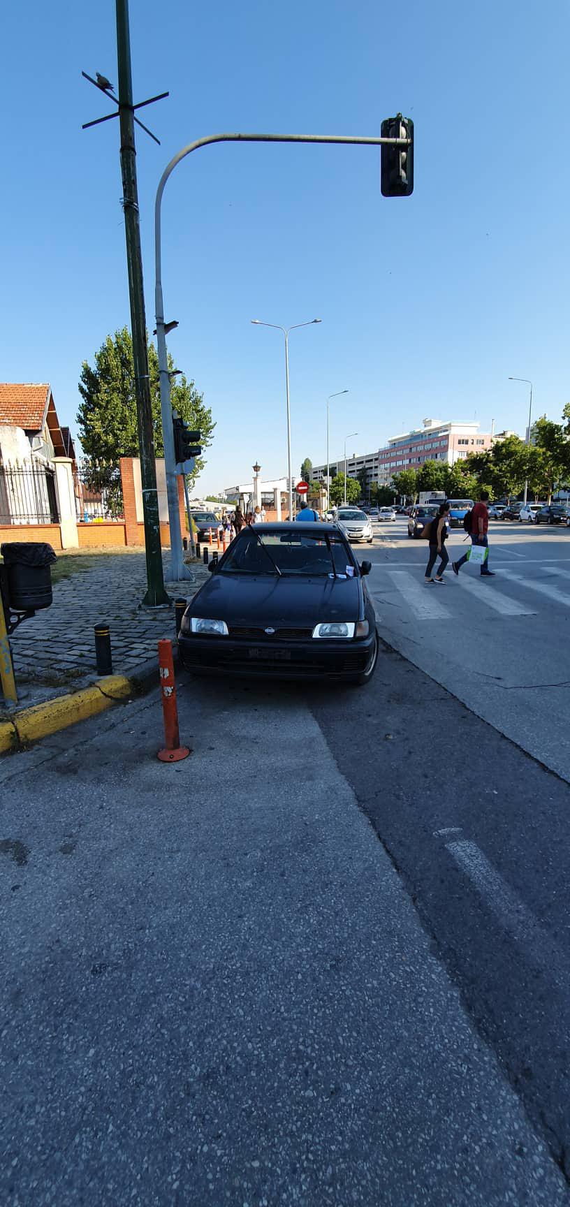 Παρκαρισμένο από χθες στην Κουντουριώτου. Χωρίς πινακίδα, πάνω στη διάβαση, πάνω στον ποδηλατόδρομο, με τη ρόδα πάνω στο πεζοδρόμιο.