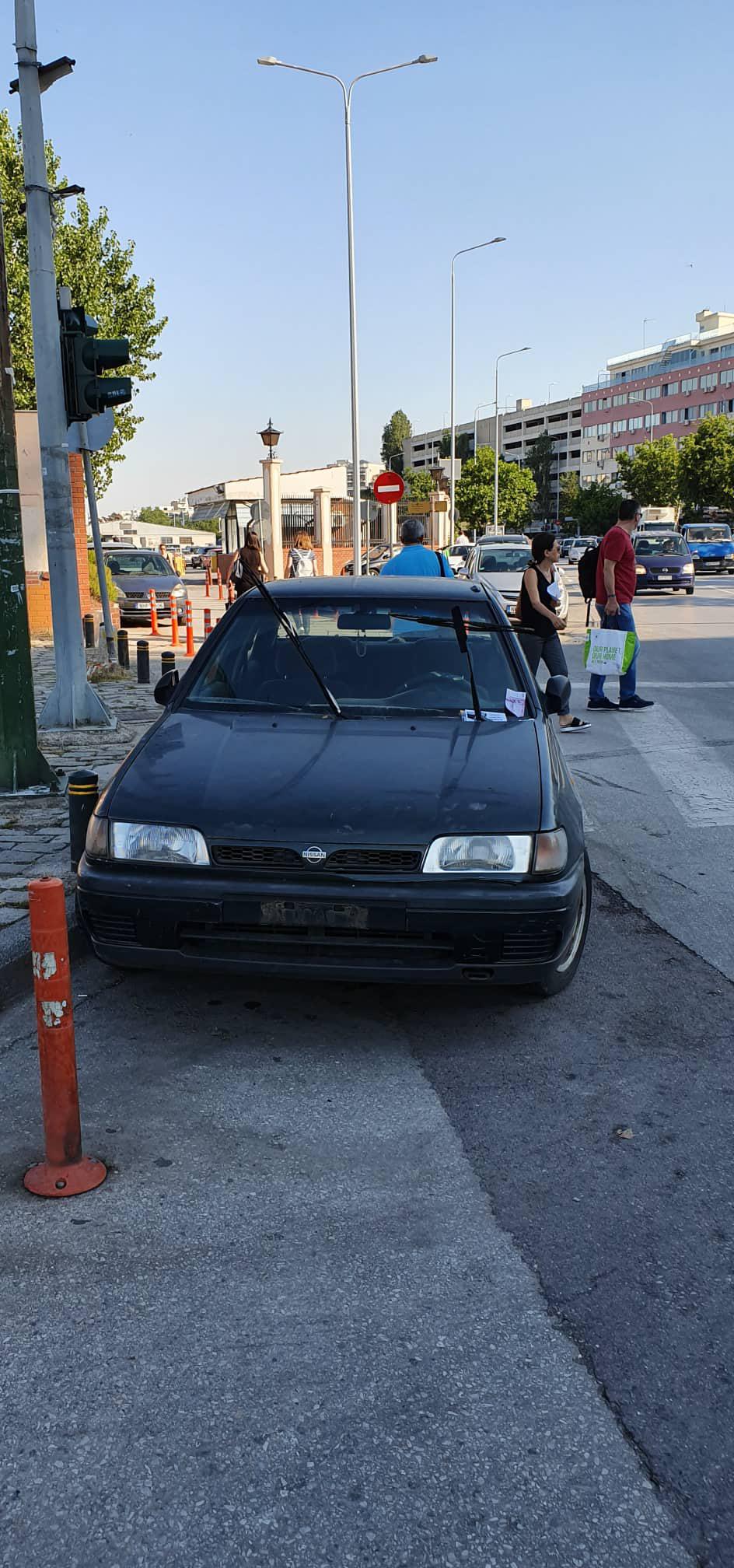 Παρκαρισμένο από χθες στην Κουντουριώτου. Χωρίς πινακίδα, πάνω στη διάβαση, πάνω στον ποδηλατόδρομο, με τη ρόδα πάνω στο πεζοδρόμιο. Χωρίς καμία κλήση από την Τροχαία. Χωρίς κανέναν γερανό να έχει εμφανιστεί. Χωρίς καμία σωτηρία και κανένα μέλλον σε αυτή την πόλη.