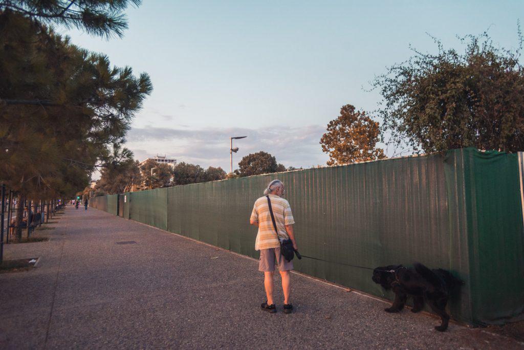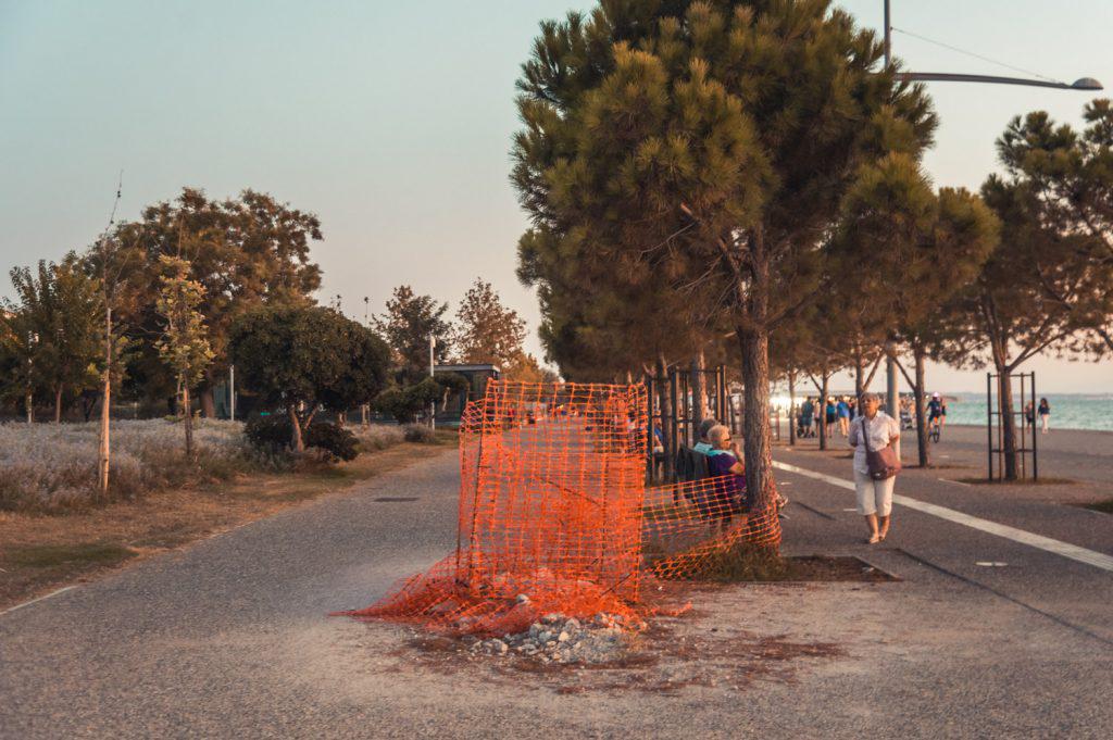 Μαραμένα πάρκα και παρατημένα δέντρα σε όλο το μήκος της, συντριβάνια που δεν λειτουργούν, σπασμένες πλάκες και λακούβες-παγίδες για τον πεζό, καμένες λάμπες, παράνομα κατειλημμένα σημεία από γεννήτριες, τραπεζοκαθίσματα, καντίνες, πατίνια, ακαθαρσίες σκύλων που δεν μάζεψαν ποτέ οι ιδιοκτήτες τους, παράνομα παρκαρισμένα αυτοκίνητα και μηχανάκια, σκουριασμένα σίδερα και καφάο, σκουπίδια παντού, χυμένα ποτά από τα υπαίθρια μπαρ, λάδια από μηχανές, καταστροφές από ψαράδες στα ξύλινα ντεκ, τρομερή ηχορύπανση μέχρι αργά τη νύχτα, συνθέτουν ένα σκηνικό εγκατάλειψης και παρακμής.