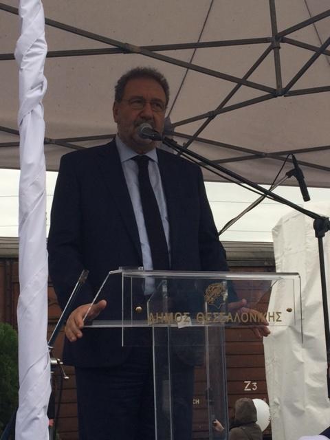 75 χρόνια από την αναχώρηση του πρώτου συρμού για το στρατόπεδο Άουσβιτς-Μπιρκενάου με τον 93χρονο Μουσά Αηλόν, ο οποίος επέζησε του Ολοκαυτώματος να προπορεύεται, τον δήμαρχο Γιάννη Μπουτάρη, τον πρόεδρο της Ισραηλιτικής Κοινότητας Δαυίδ Σαλτιέλ, τον Γερμανό πρόξενο, την πρέσβειρα του Ισραήλ, τους βουλευτές του ΣΥΡΙΖΑ, Τριαντάφυλλο Μυταφίδης, Αλέξανδρο Τριανταφυλλίδη, Νίκος Παρασκευόπουλο, τον βουλευτής της ΝΔ Σταύρο Καλαφάτη. Αλλά και την Χάρη Αλεξίου πλάι στον επιστήθιο φίλο της και διάσημο Ισραηλινό τραγουδιστή Yehuda Poliker που έκλεισε την εκδήλωση με ένα τραγούδι στη μνήμη τους.