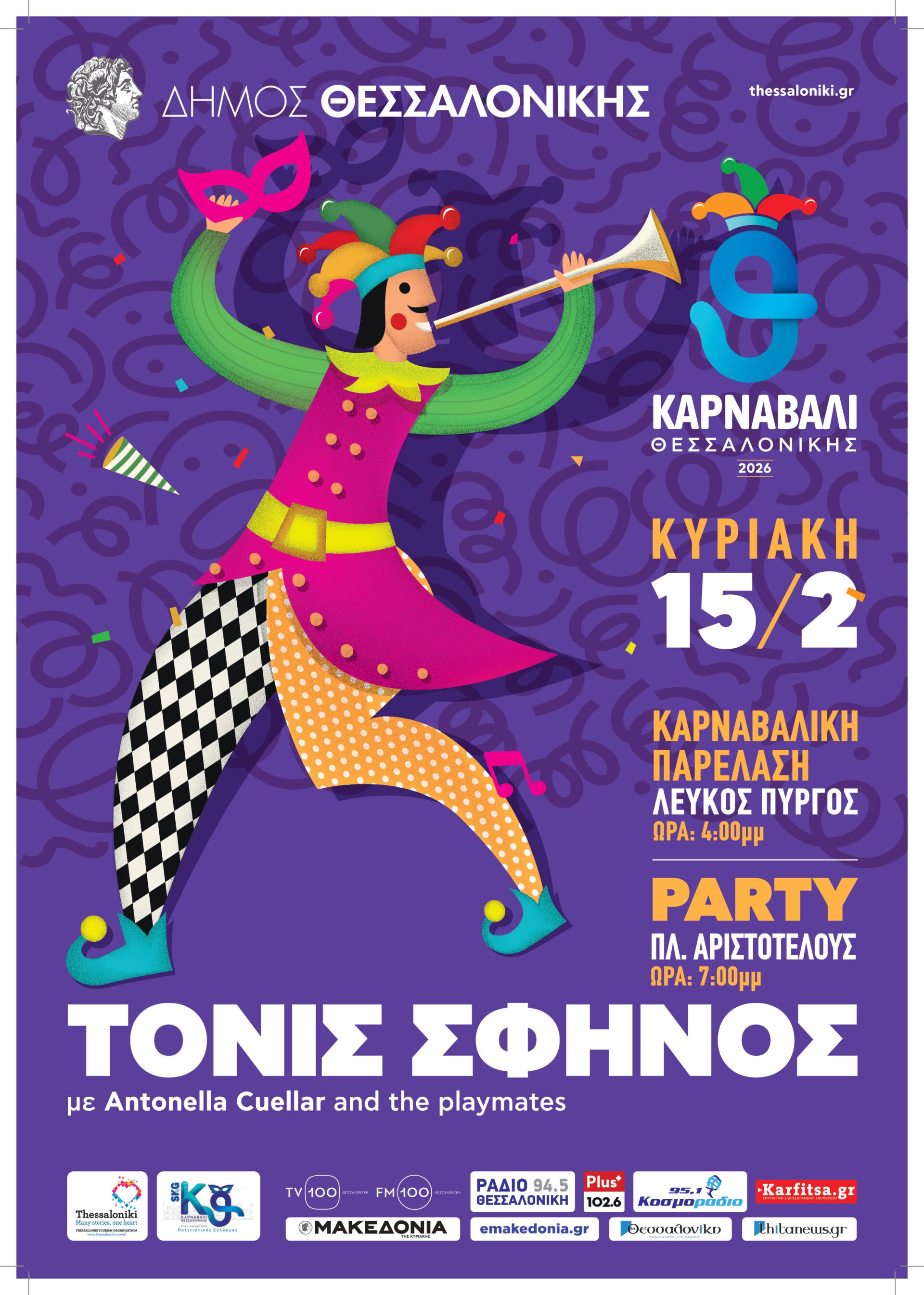 Ο Δήμος Θεσσαλονίκης διοργανώνει μεγάλο αποκριάτικο πάρτυ με τον Τόνι Σφήνο, την Κυριακή 15 Φεβρουαρίου 2026, στις 19.00, στην Πλατεία Αριστοτέλους.