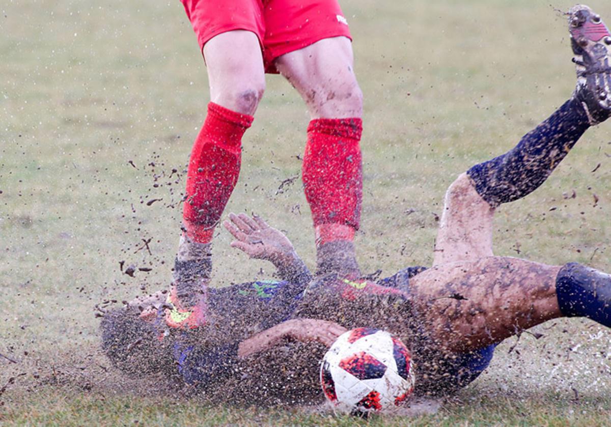Γιάννης Μωϋσιάδης Ποδοσφαιριστές μονομαχούν στη λάσπη, στον αγώνα Ηρακλής Αμπελοκήπων – Ολυμπιακός Κυμίνων για το πρωτάθλημα της ΕΠΣΜ (30 Ιανουαρίου 2019)