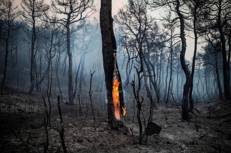 Άγγελος Τζωρτζίνης Καμένο δάσος μετά τη μεγάλη πυρκαγιά κοντά στο χωριό Μακρυμάλλη, στο νησί της Εύβοιας (14 Αυγούστου 2019)