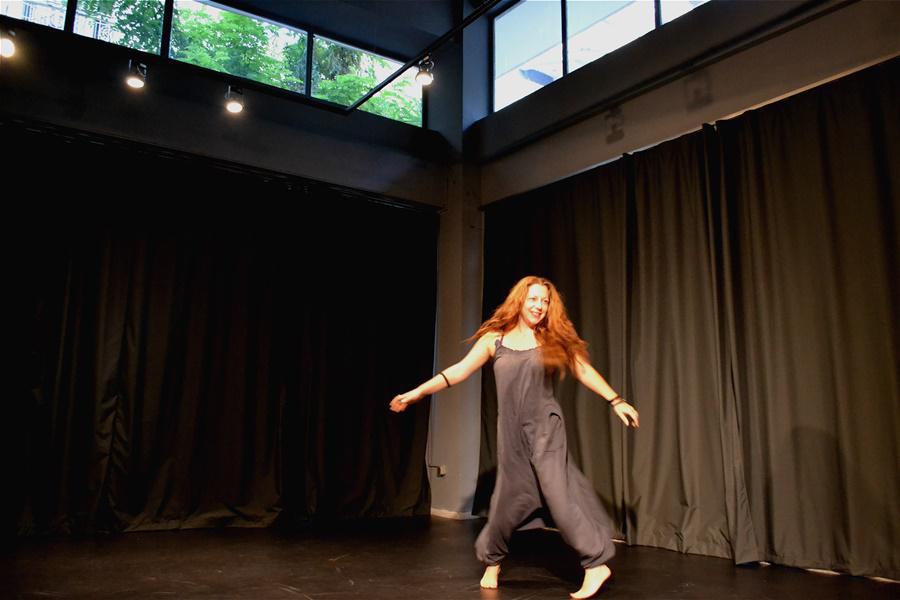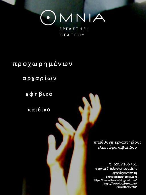 Βρίσκομαι στο εργαστήρι θεάτρου OMNIA (ρωμαϊκή αγορά), όπου διδάσκω και κάνω πρόβες.