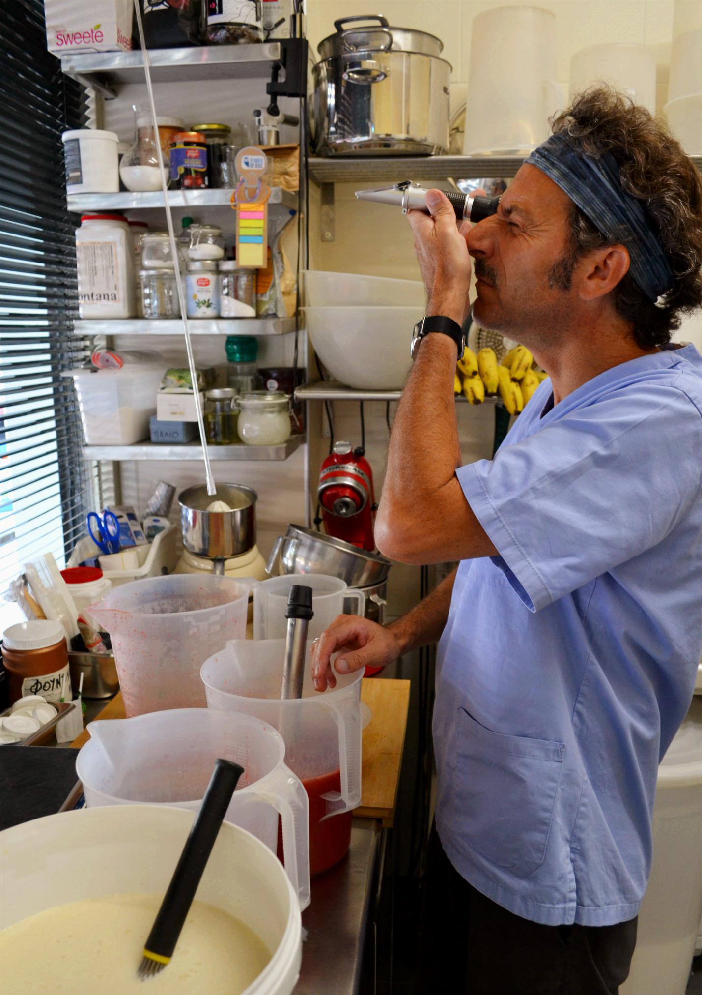 Θέλω να μάθω στους Θεσσαλονικείς να ξεχωρίζουν το πραγματικό παγωτό από το παγωμένο γλύκισμα. Να καταλάβουν ότι η γεύση του γάλακτος, οι κρόκοι αυγού, είναι ζητούμενο στο παγωτό και ότι τα σορμπέ παρασκευάζονται από φρέσκα φρούτα εποχής κι όχι από έτοιμες βιομηχανοποιημένες γεύσεις, όχι από τεχνικά χρώματα και αρώματα.