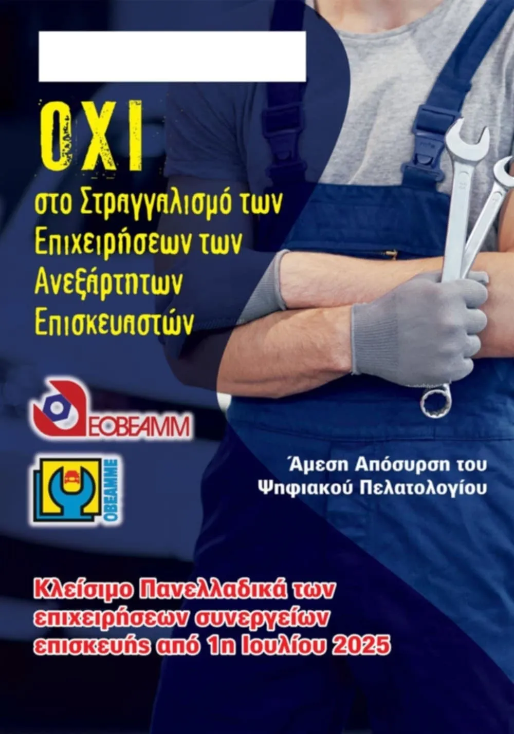 – Η εφαρμογή του ψηφιακού πελατολογίου στα συνεργεία αυτοκινήτων, χωρίς πρόβλεψη για τις τεχνικές, οργανωτικές και λειτουργικές ιδιαιτερότητες του κλάδου, δημιουργεί νέα βάρη και σοβαρούς κινδύνους για την επιβίωση χιλιάδων επιχειρήσεων.