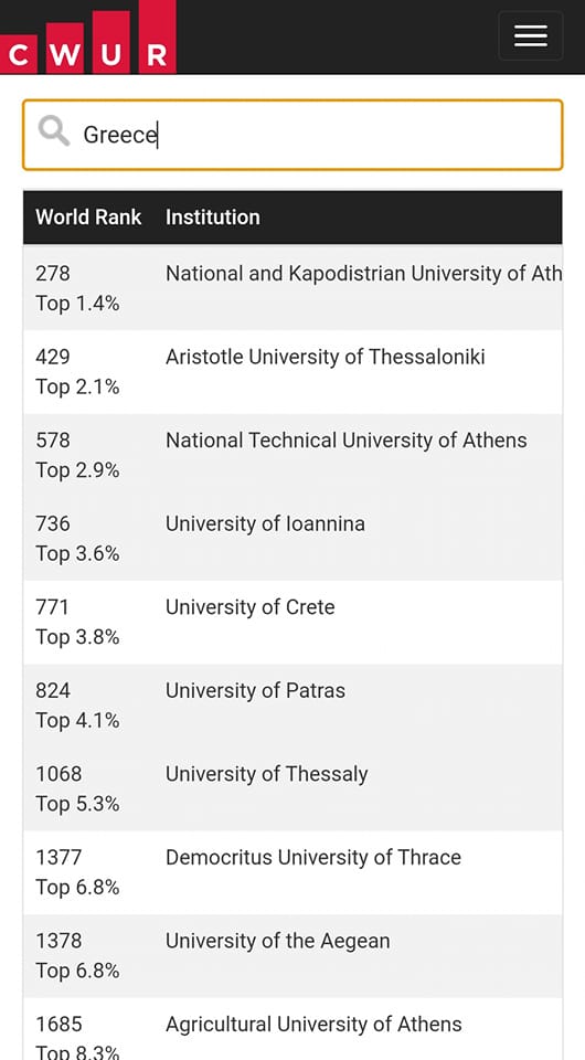Ποιες θέσεις λαμβάνουν τα πανεπιστημιακά ιδρύματα της χώρας ανάμεσα σε περίπου 20.000 από όλο τον κόσμο