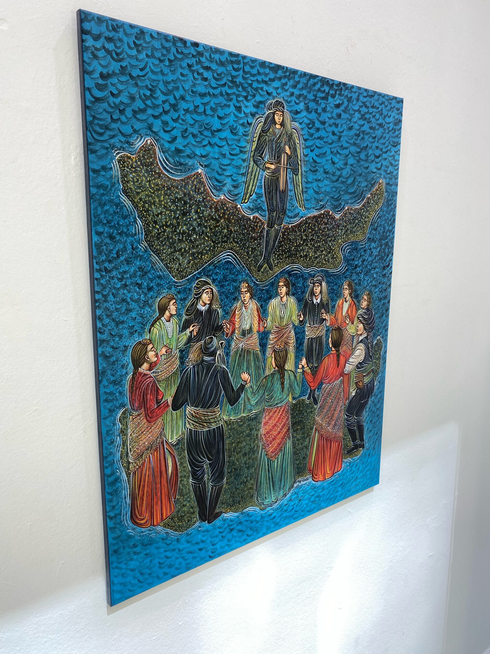 Μας προτρέπει να δούμε τα ανθρωποκεντρικά έργα της ως βιβλία που αφηγούνται μικρά ή μεγάλα ιστορικά γεγονότα, πολιτιστικά δρώμενα και στιγμές ζωής. Τα πρόσωπα άλλοτε υπαρκτά κι άλλοτε συμβολικά μας μιλούν με αρμονικούς χρωματισμούς για τον ηρωισμό της πολύπαθης ποντιακής μορφής, η οποία «ανθεί και φέρει κι άλλο» με πίστη και αγάπη για τη ζωή και τις αξίες της σε όποιο σημείο της γης κι αν βρίσκεται τώρα. Οι χορευτές ευλαβικά τιμούν τη ζίπκα, το ταραπουλούζ, το πασλούκ, την τάπλα, τη ζιπούνα, την φωτά και το εγγόνι κρατά ως φυλαχτό πολύτιμο το μαντήλι της γιαγιάς κι ένα μπουκέτο αμάραντα του Πόντου.
