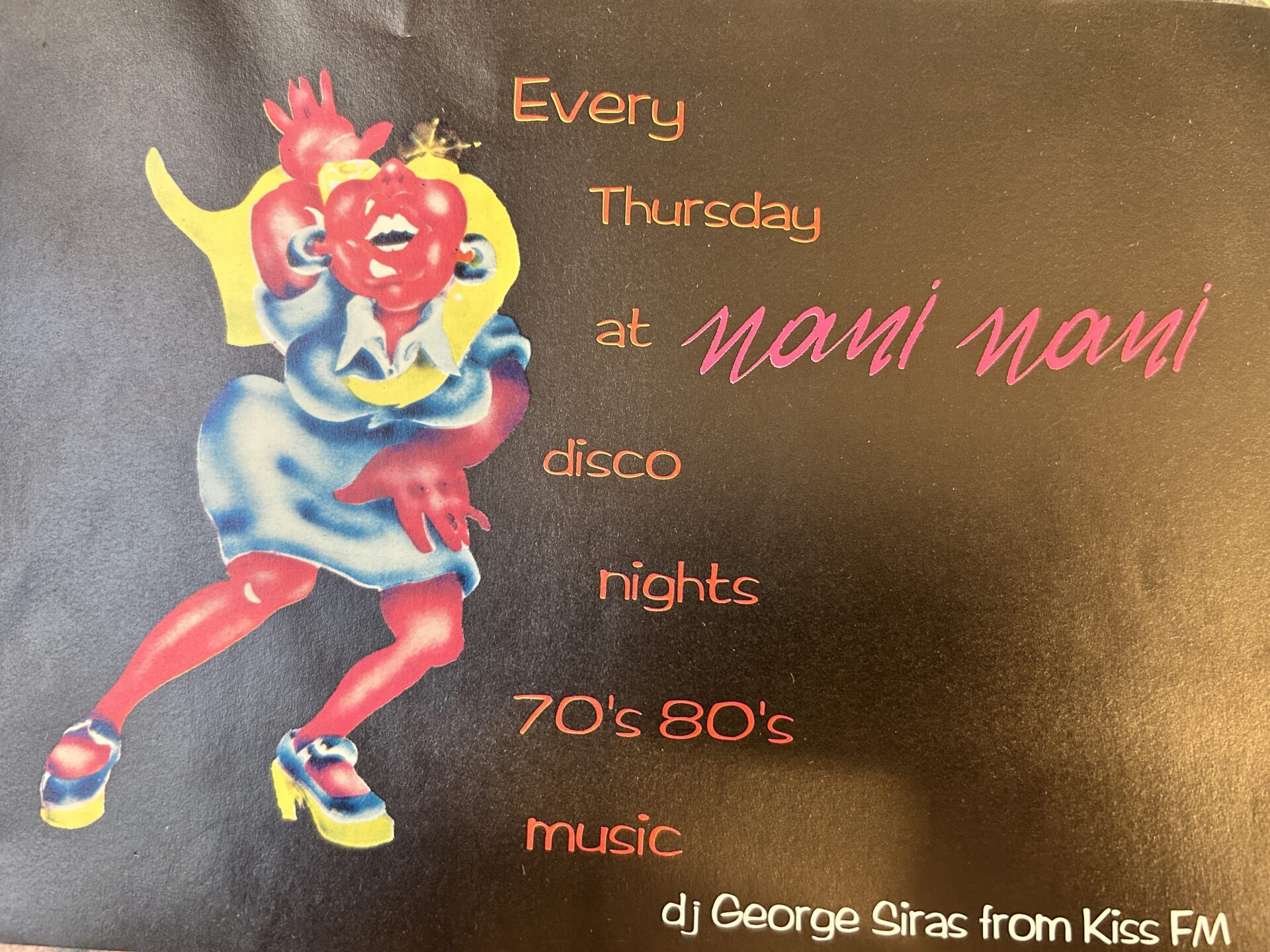 Στην μέση του δρόμου ο Γιώργος Σαββουλίδης λικνίζονταν και χόρευε ανάμεσα σε τεράστια φτερά και πούπουλα. Στο Nani Nani τις Κυριακές τα πάρτι ξεκινούσαν απόγευμα με τον Βαλαβάνη στα deck.