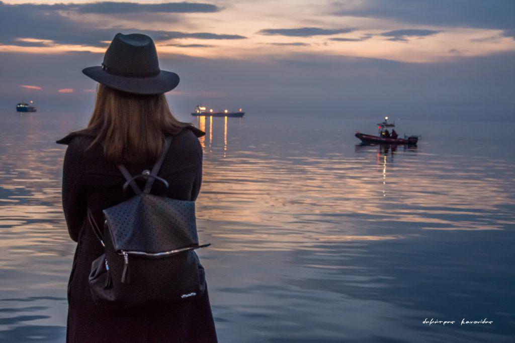 Τούτη την ώρα κάνοντας μια βόλτα στην παραλία, μια μέρα χειμωνιάτικη σαν την χθεσινή, νοιώθει κανείς ότι ζει σε μιαν άλλη πόλη. Τα χρώματα του ορίζοντα, της θάλασσας, της πόλης που τυλίγεται σιγά σιγά στο σκοτάδι, κάνουν τους περιπατητές να ξεχνούν τα προβλήματα της καθημερινότητας, να γεύονται τις ομορφιές που τους προσφέρει το μοναδικό τοπίο, γεμίζοντας τις καρδιές και το νου τους με παραστάσεις που τους γαληνεύουν την ψυχή.