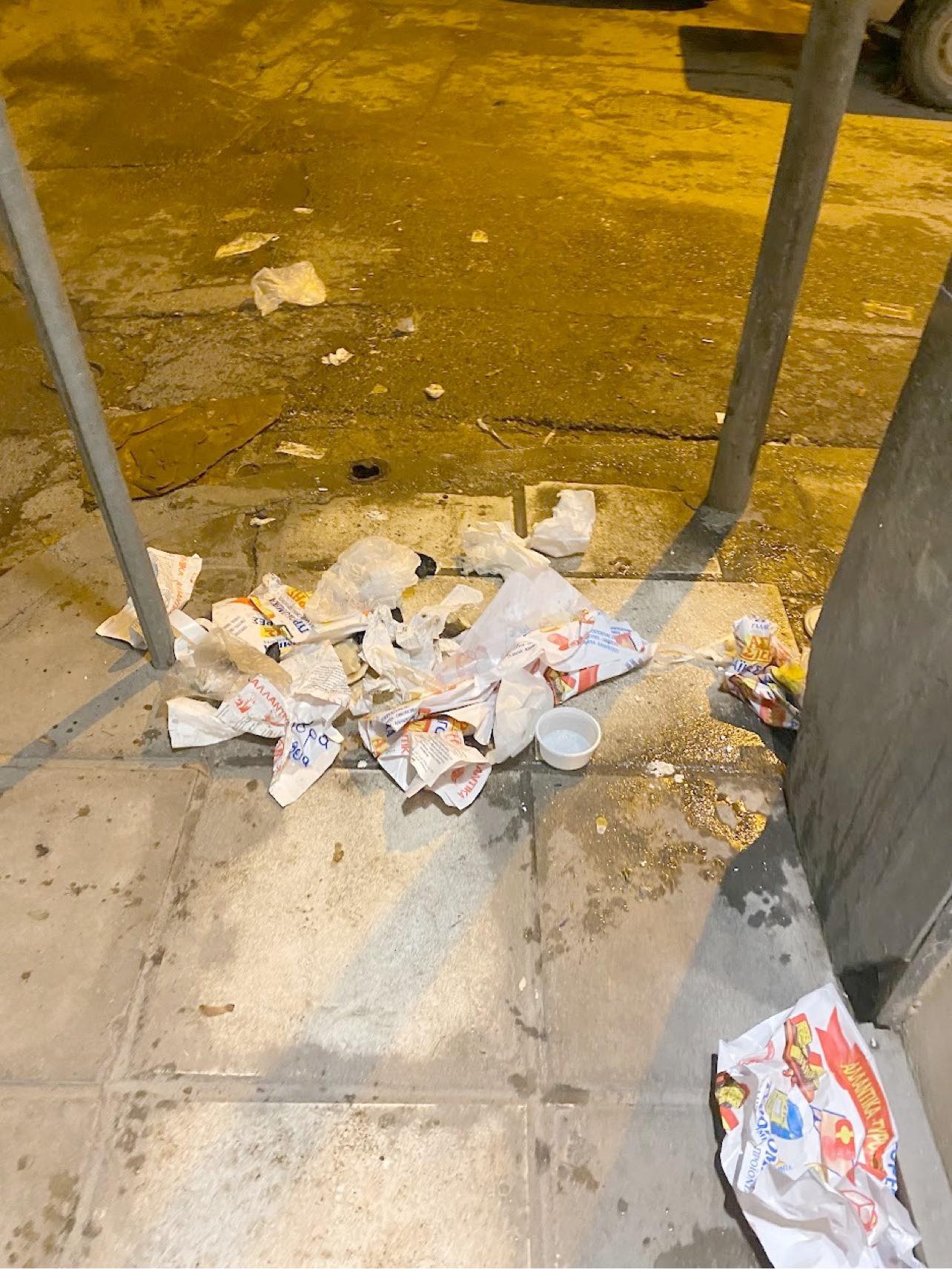 Παρά τις προσπάθειες των συνεργείων του Δήμου, οι πολίτες αναφέρουν ότι ακόμα και μέρες μετά ο δρόμος είναι γεμάτος με λέπια, φλούδες, παρατημένα λαχανικά, σκουπίδια στις δενδροδόχους.