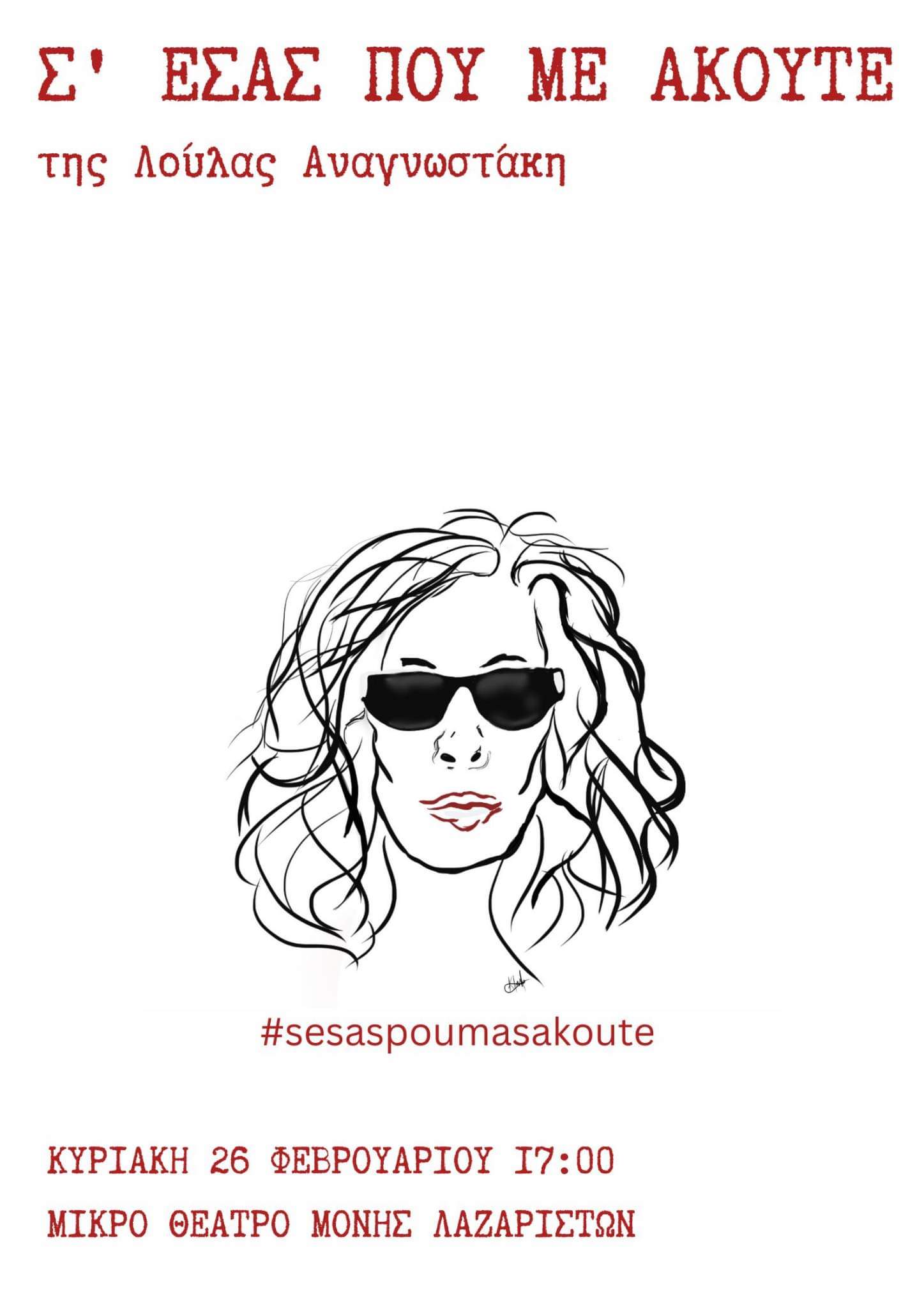 Λόγω του περιορισμένου αριθμού θέσεων, δελτία εισόδου με σειρά προτεραιότητας θα δίνονται στην είσοδο του θεάτρου μέχρι τις 16:30. Μετά το τέλος της παράστασης, θα ακολουθήσει συζήτηση με το κοινό.