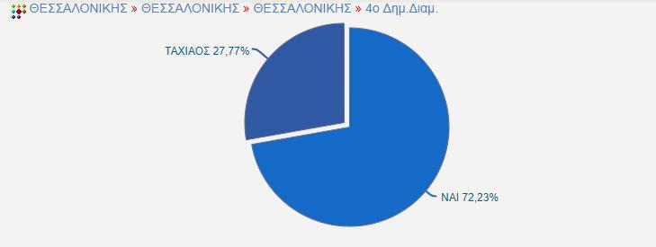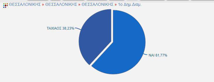 Από την πλευρά του, ο Νίκος Ταχιάος πέτυχε τα μεγαλύτερα ποσοστά του στο 1ο Δημοτικό Διαμέρισμα (38,23%) και στο 5ο Δημοτικό Διαμέρισμα (Αγίας Τριάδος, Αγ. Ελευθερίου, Αναλήψεως, Οσίας Ξένης) με 36, 1%.