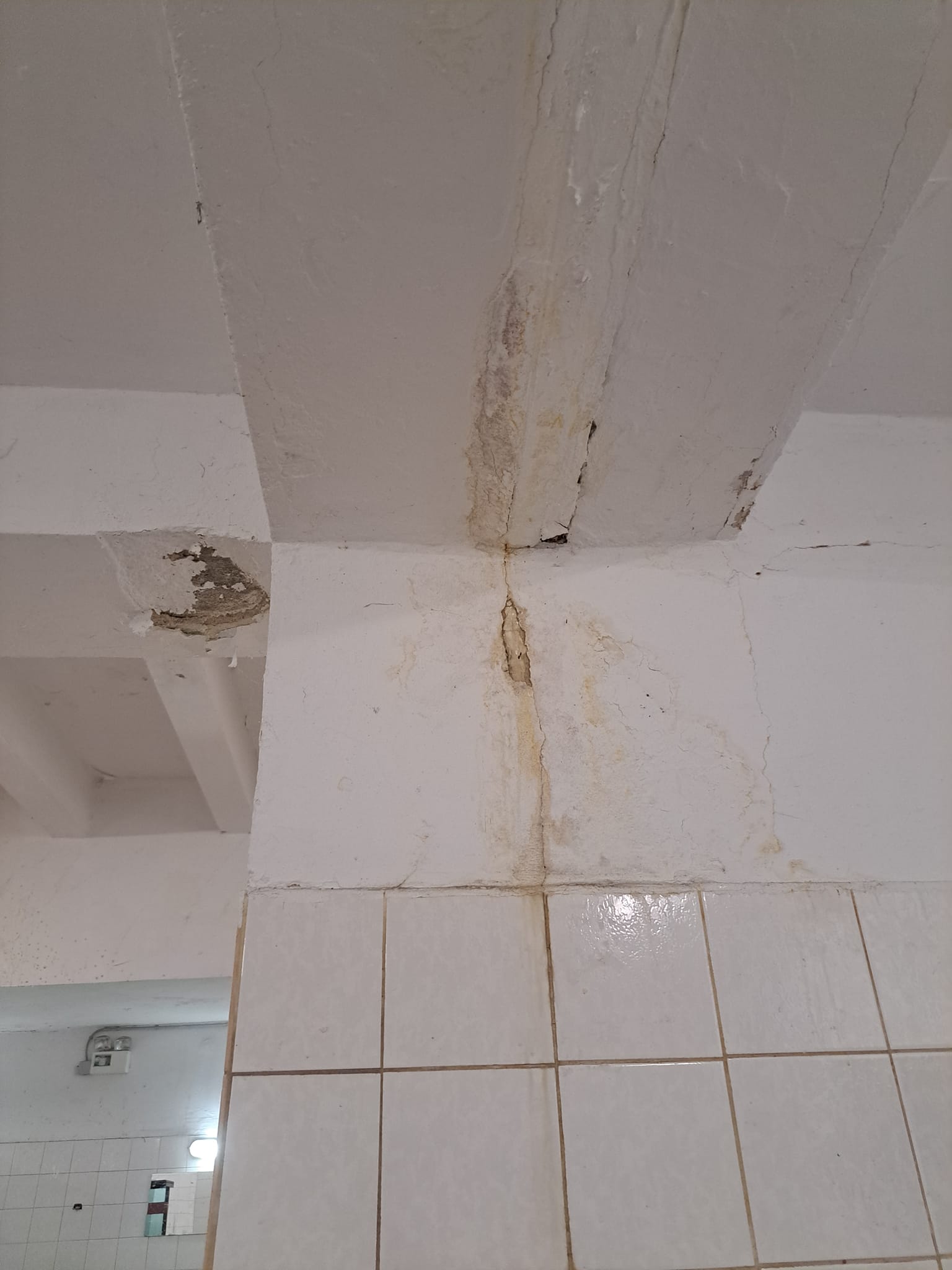 Σύμφωνα με καταγγελία της Λένκως Δέλη στα μέσα κοινωνικής δικτύωσης, φωτιστικά, σκουριασμένοι σωλήνες και κουβάδες μαζεύουν το νερό της βροχής που τρέχει από το ταβάνι. Ένας ηλεκτρολογικός πίνακας είναι εκτεθειμένος στο ύψος των παιδιών.