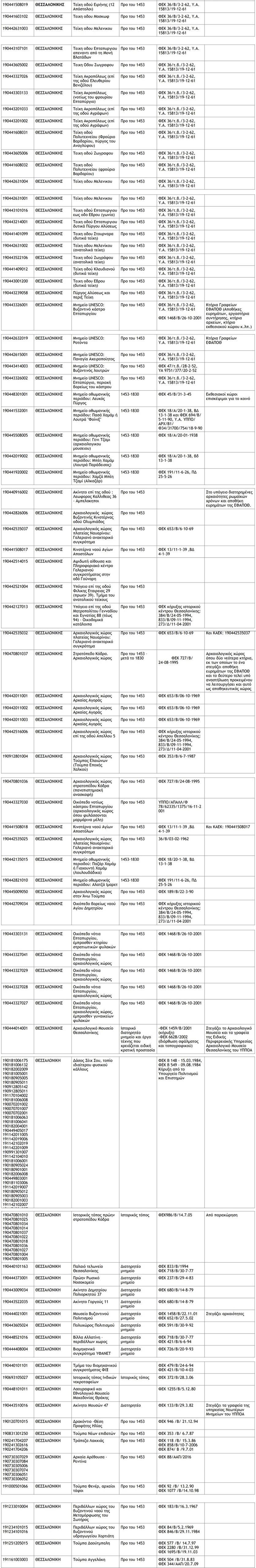 Σύμφωνα με την δημοσίευση του Συλλόγου, το Παράρτηµα µε τη λίστα των ΚΑΕΚ µνηµείων και πολιτιστικών κτιρίων που κατέθεσε µαζί µε την προσφυγή του στο ΣτΕ ο Σύλλογος Ελλήνων Αρχαιολόγων και οι Δήµαρχοι Πατρέων και Σπάρτης, αφορά 587 ΚΑΕΚ από 37 νοµούς της χώρας, που είχε καταφέρει ο Σύλλογος να ταυτοποιήσει ως τις 2/11/2018 που προσέφυγε στο ΣτΕ. Ο έλεγχος των υπηρεσιών του ΥΠΠΟ αργότερα έδειξε ότι ο τελικός αριθµός των ακινήτων πολιτιστικού ενδιαφέροντος είναι 2.329 (από τα συνολικά 10.119 ακίνητα που µεταβιβάζει η προσβαλλόµενη Υπουργική Απόφαση Τσακαλώτου).