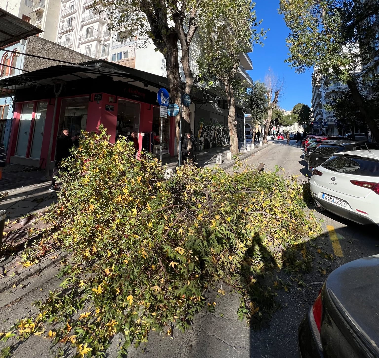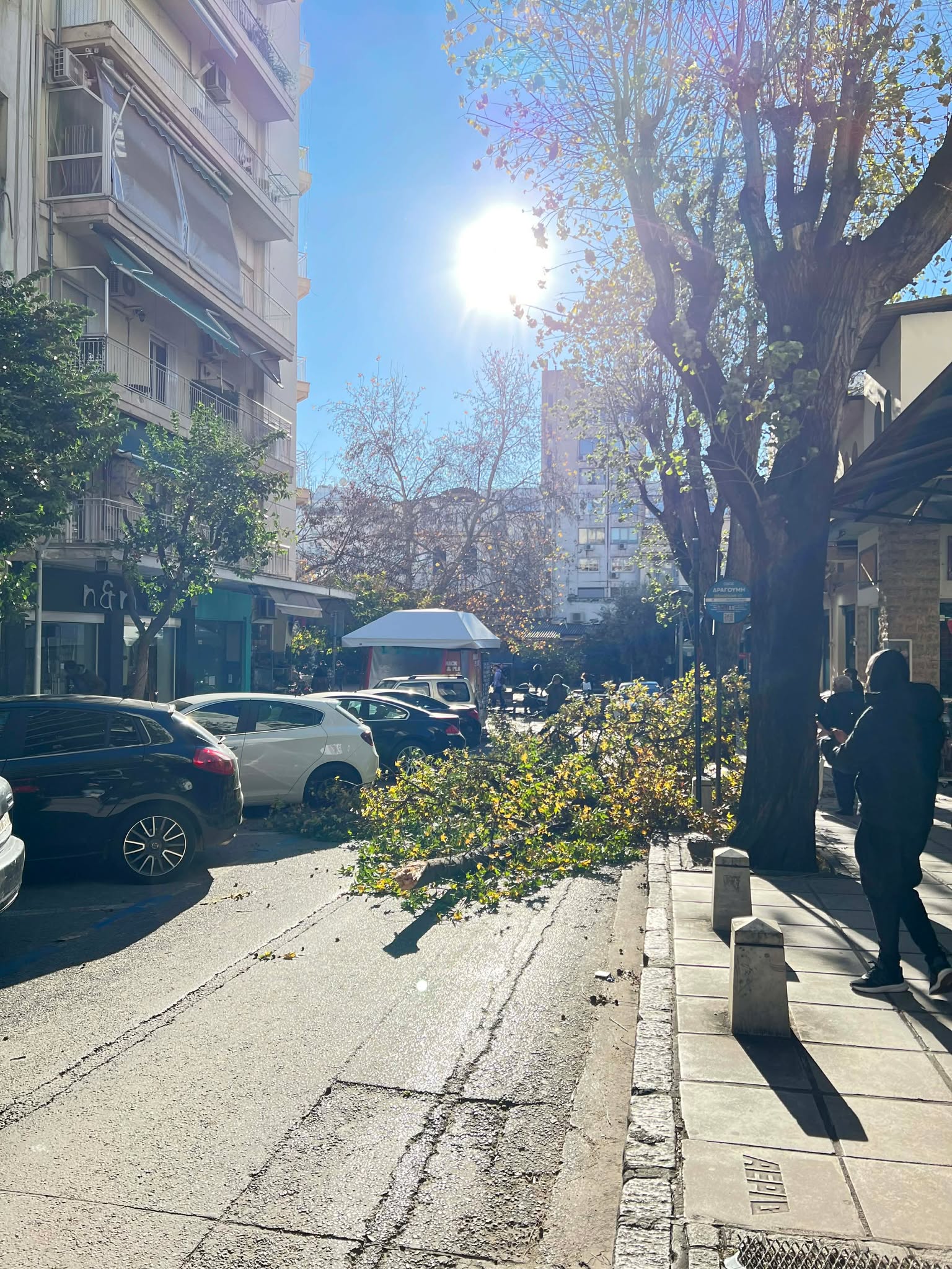 Πτώσεις δέντρων έχουν σημειωθεί και στο κέντρο της πόλης, όπως φαίνεται και στις παρακάτω εικόνες από την οδό Μητροπολίτου Γενναδίου.
