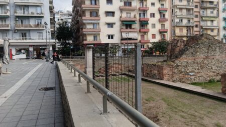 Η Εφορεία Αρχαιοτήτων μετά τις δυο προηγούμενες άκαρπες προσπάθειες να περιφράξει τις αρχαιότητες του Γαλεριανού Συγκροτήματος προχώρησε σήμερα σε μια τρίτη απόπειρα δοκιμαστικής τοποθέτησης.