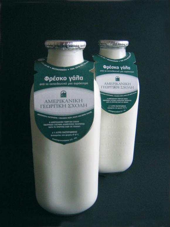 Μινιµαλιστικό το µπουκάλι του γάλακτος της Αµερικανικής Γεωργικής Σχολής, περιζήτητο το περιεχόµενό του. Περίπου 3000 τέτοια µπουκάλια, εµπνευσµένα από αµερικάνικες φιάλες γάλακτος στο σχέδιο, κυκλοφορούν καθηµερινά και χάρη στη φήµη τους γίνονται ανάρπαστα. Από τους πρώτους που το απολαύσαν – προς τιµήν της Σχολής – ήταν οι µικροί πρόσφυγες του Πρώτου Παγκόσµιου στον Ερυθρό Σταυρό, µε «γαλατάδες» τους µαθητές της σχολής που το κατέβαζαν στο κέντρο µε γαϊδουράκια. Τόσο παλιά ιστορία; Και ακόµη περισσότερο: η σχολή ιδρύθηκε το 1904, ενώ το 1935 δηµιούργησε την πρώτη µονάδα παστερίωσης και εµφιάλωσης γάλακτος στη χώρα µας. Ενώ η απλή όσο και καλαίσθητη γυάλινη φιάλη είναι και ήταν ανέκαθεν επιστρεφόµενη, τα τελευταία χρόνια οι επιστροφές όλο και µειώνονται. Με αυτό το σκεπτικό, η Σχολή, που πρεσβεύει την οικολογία στην πράξη, άλλαξε την συσκευασία σε µια νέα, πιο πρακτική, ανακυκλώσιµη και µε καπάκι που σφραγίζει. Το περιεχόµενό της προέρχεται αποκλειστικά από αγελάδες Holstein Friesian – τις οποίες µπορείτε και να επισκεφτείτε – και έχει την πράσινη σφραγίδα της Greenpeace, υπόσχεται όµως να παραµείνει ποιοτικά ίδιο και λαχταριστό. Πολλοί το χρησιµοποιούσαν και ως ανθοδοχείο ή για καράφα νερού.