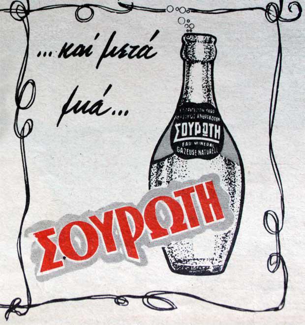 Φαντάσου πως είσαι Γάλλος, είναι 1915, και ο πρώτος παγκόσµιος πόλεµος να σε έχει φέρει µακριά από το σπίτι, στην Ελλάδα. Συγκεκριµένα, σε ένα µικρό οικισµό ονόµατι Σουρωτή… όταν ξαφνικά ανακαλύπτεις έναν κρυµµένο υγρό θησαυρό, µια πηγή µε ανθρακούχο µεταλλικό νερό υπόξινο και φίνο. Αυτοί οι γάλλοι στρατιώτες δηµιούργησαν το πρώτο υποτυπώδες εµφιαλωτήριο στη Σουρωτή, αν και το νερό απολάµβαναν οι ανώτεροί τους. Μετέπειτα φαν της Σουρωτής, οι Σέρβοι της µεραρχίας του Μοράβα, ο Ελευθέριος Βενιζέλος, που θεωρούσε το νερό αυτό εφάµιλλο, αν όχι καλύτερο από τα ευρωπαϊκά, και γρήγορα όλη η Ελλάδα. Η φιάλη του πρωτοκυκλοφόρησε το ’50 και ταξιδεύει από παραθαλάσσιες ταβέρνες του Αιγαίου, σε προσεγµένα εστιατόρια των πόλεων, στα ράφια των καταστηµάτων της Αµερικής και σε επτά άλλες χώρες. Το παραδοσιακό πράσινο µπουκάλι δάνεισε το σχήµα του αργότερα και στο µπλε του αδερφάκι. Το χαρακτηριστικό σήµα της εταιρίας Σουρωτή Α.Ε. ανανεώθηκε το 1998, ενώ το περιεχόµενο λέγεται πως θαύµαζε ακόµα και ο Μέγας Αλέξανδρος.