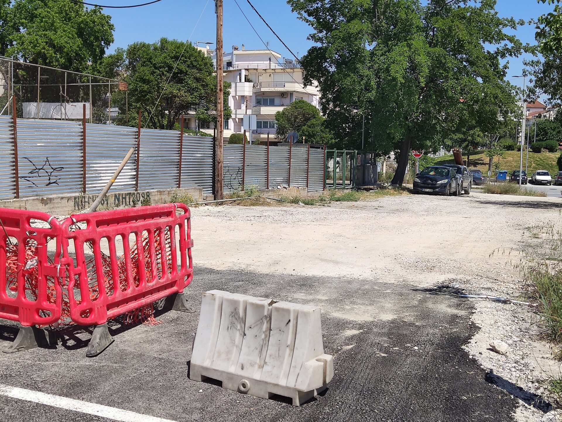 Παραδίπλα, συνεργεία τοποθετούσαν περίφραξη στο χώρο στάθμευσης.