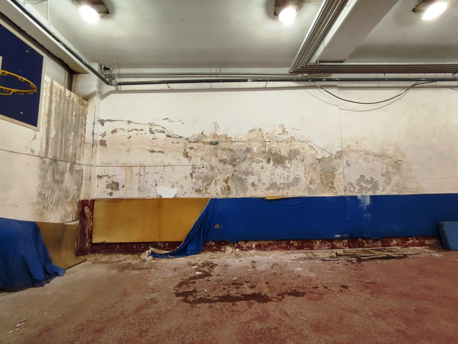 Ωστόσο η κατάσταση που επικρατεί στο υπόγειο του κτιρίου είναι άκρως ανησυχητική και δεν επιτρέπει ολιγωρίες καθώς ολόκληροι τοίχοι αλλά και κολώνες, φέρουν έντονα σημάδια διάβρωσης.