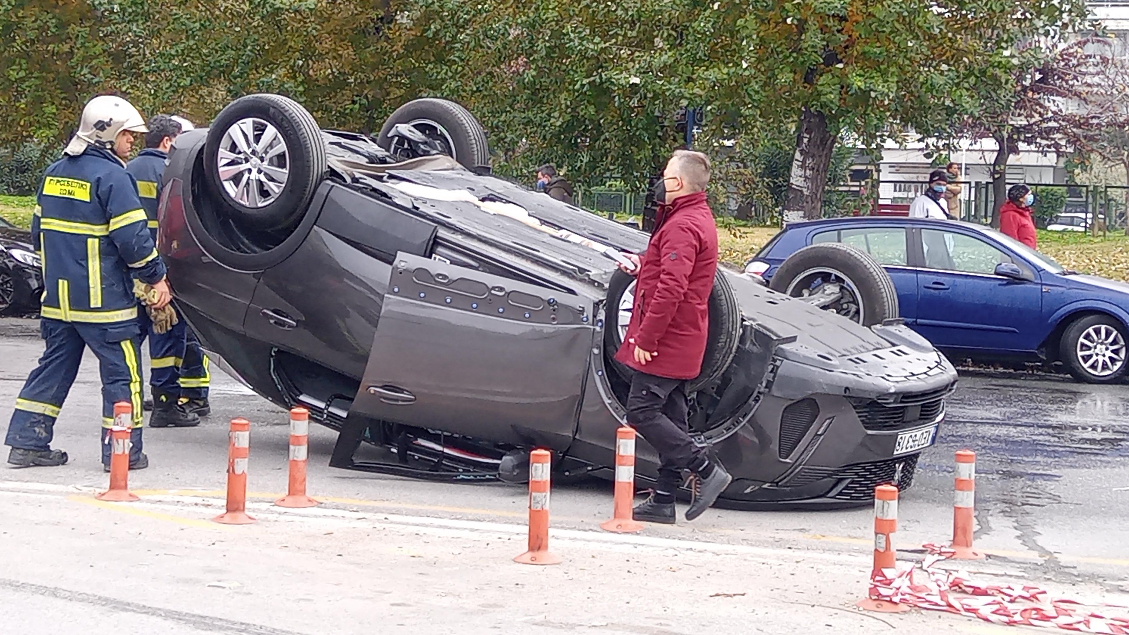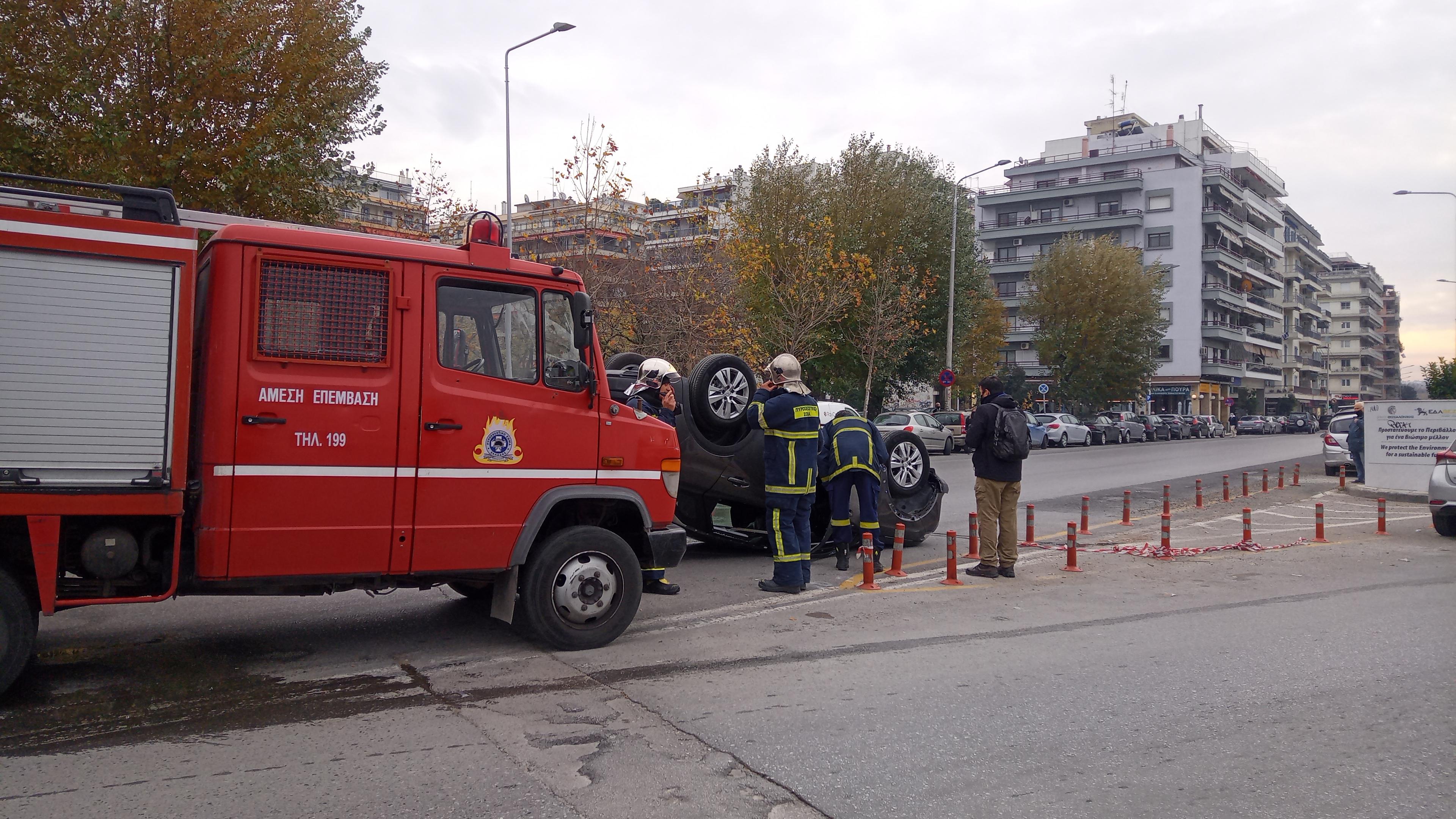 Ένα αυτοκίνητο που κατευθυνόταν από την παραλιακή προς την οδό Ανθέων εξετράπη της πορείας του πριν λίγο με αποτέλεσμα να αναποδογυρίσει.