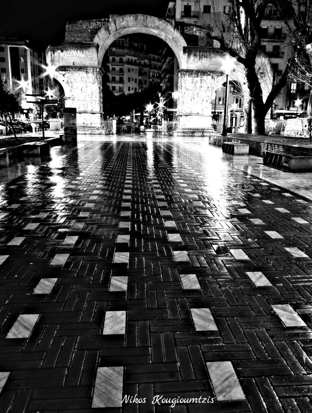 Πόσες φορές στη ζωή σου είδες την Καμάρα τόσο έρημη όσο απόψε; Το δημοφιλέστερο μέρος των ραντεβού της πόλης, εδώ και δεκαετίες, το μέρος που ξεκινούν οι βόλτες και τα ζευγαρώματα, απόψε είχε μια απόκοσμη ερημιά. Ο Νίκος Κουγιουμτζής την αποτύπωσε μοναδικά. Ιδανική εικόνα για καληνύχτα και αστικά όνειρα.