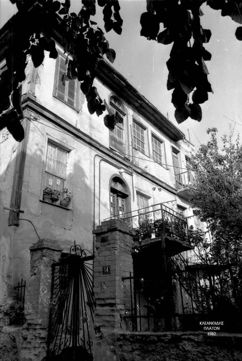 Λίγο παραπάνω, στον αριθμό 14, στη δεξιά πλευρά του δρόμου, υπήρχε μία επιβλητική τριώροφη κατοικία, με σειρά παραθύρων στην πρόσοψη και διώροφο σαχνισί στην πλάγια όψη. Μία περίτεχνη σιδερένια εξώπορτα οδηγούσε στην αυλή. Η οικία δεν υπάρχει σήμερα, ενώ όπως φαίνεται, από τις φροντισμένες γλάστρες στο περβάζι και στο μπαλκονάκι της παλιάς φωτογραφίας, κατοικούνταν μέχρι τη δεκαετία του 1980.