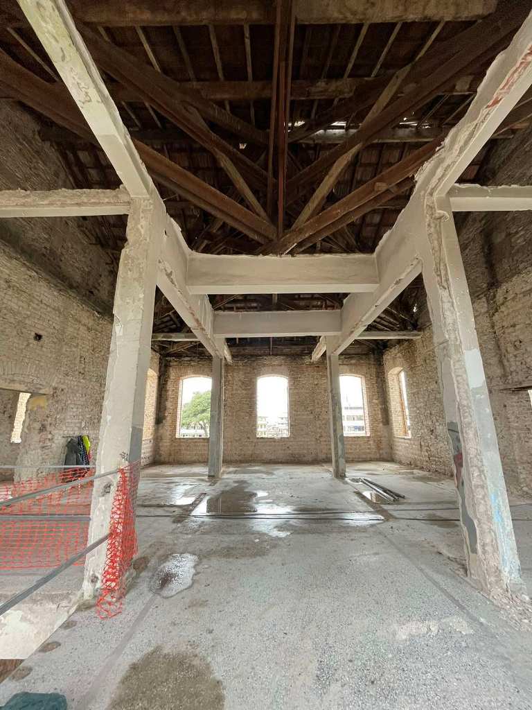 Οι βασικές επιλογές της αποκατάστασης είναι σε µέγιστο βαθµό η αποκατάσταση του κελύφους και η δηµιουργία ενός ξύλινου σκελετού στα χνάρια του αρχικού, που σέβεται πλήρως την κατασκευαστική λογική του κτιρίου και την αρχική του τυπολογία. Απομακρύνεται ο φορέας σκυροδέματος και κατασκευάζεται νέος ξύλινος φορέας με διπλή κιονοστοιχία.