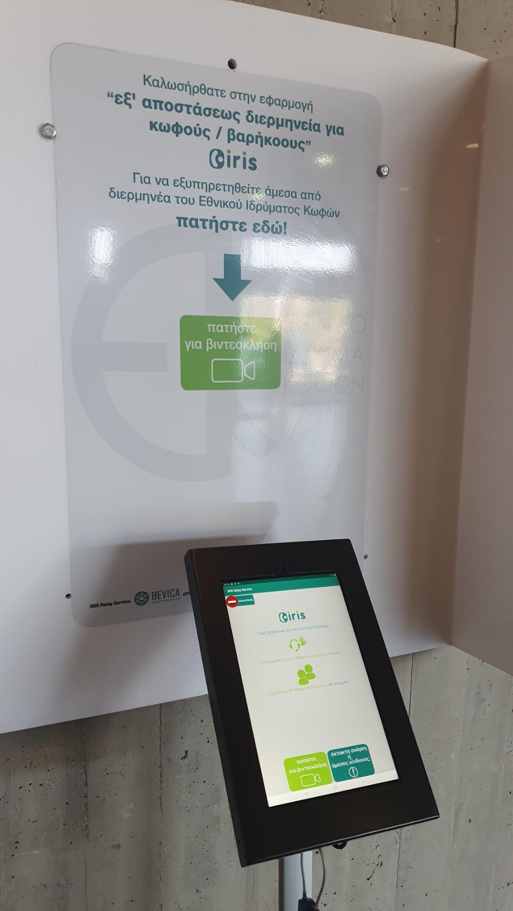 Ο σταθμός επικοινωνίας για κωφούς και βαρήκοους είναι ουσιαστικά ένα «tablet», το οποίο έχει ενσωματωμένη την εφαρμογή «iris», μέσω της οποίας παρέχονται υπηρεσίες εξ αποστάσεως διερμηνείας και χειλεανάγνωσης από το Εθνικό Ίδρυμα Κωφών. Η υπηρεσία παρέχεται δωρεάν όλο το 24ωρο.