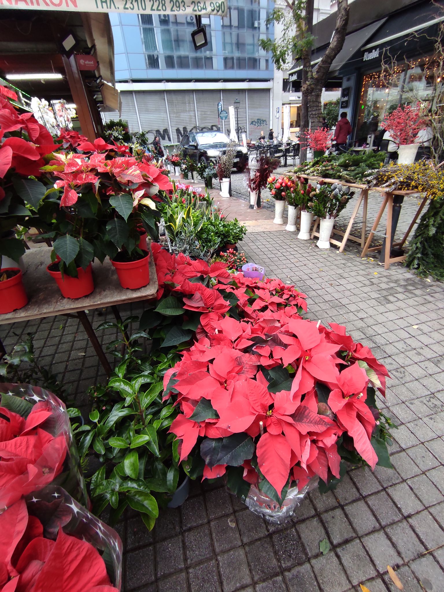 Τα «αλεξανδρινά», σύμβολο των Χριστουγέννων, βρίσκει κανείς στα «Λουλουδάδικα», στην καρδιά της Θεσσαλονίκης: