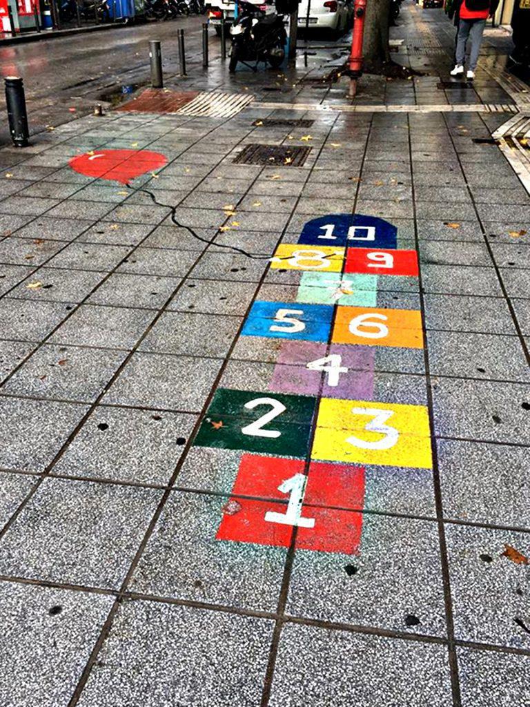 Αλεξάνδρου Σβώλου στο ύψος της Γούναρη, εκεί που περπατάς στο πεζοδρόμιο, ξαφνικά θυμάσαι την παιδική σου ηλικία, παίζεις ένα κουτσό και συνεχίζεις την πορεία σου.