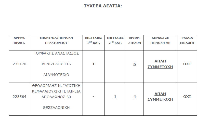 Επίσης, ένα (1) τυχερό δελτίο βρέθηκε στην 2η κατηγορία (5) το οποίο κερδίζει το ποσό των € 78.861,92.