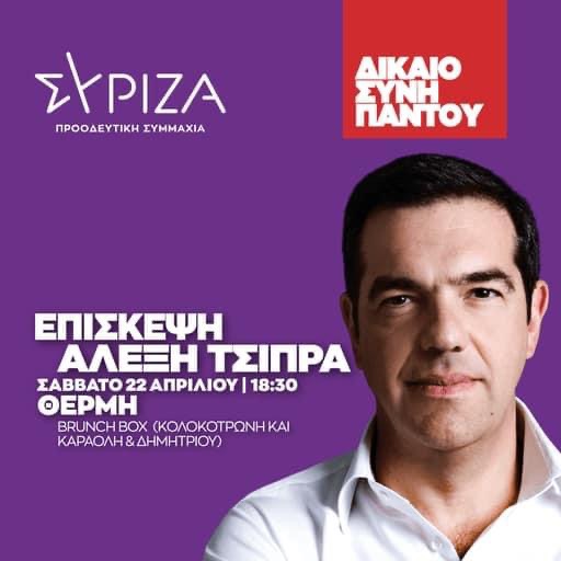 Σύμφωνα με τα όσα έχουν γίνει γνωστά θα επισκεφθεί τη Θέρμη, όπου θα μιλήσει σε συγκέντρωση φίλων του κόμματος σε κεντρικό καφέ.